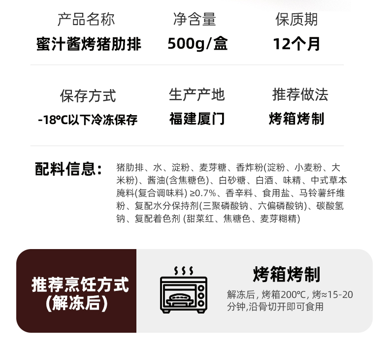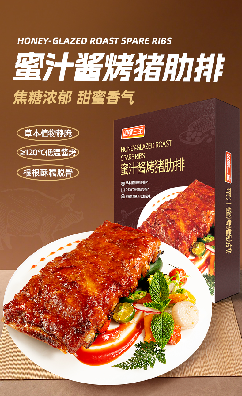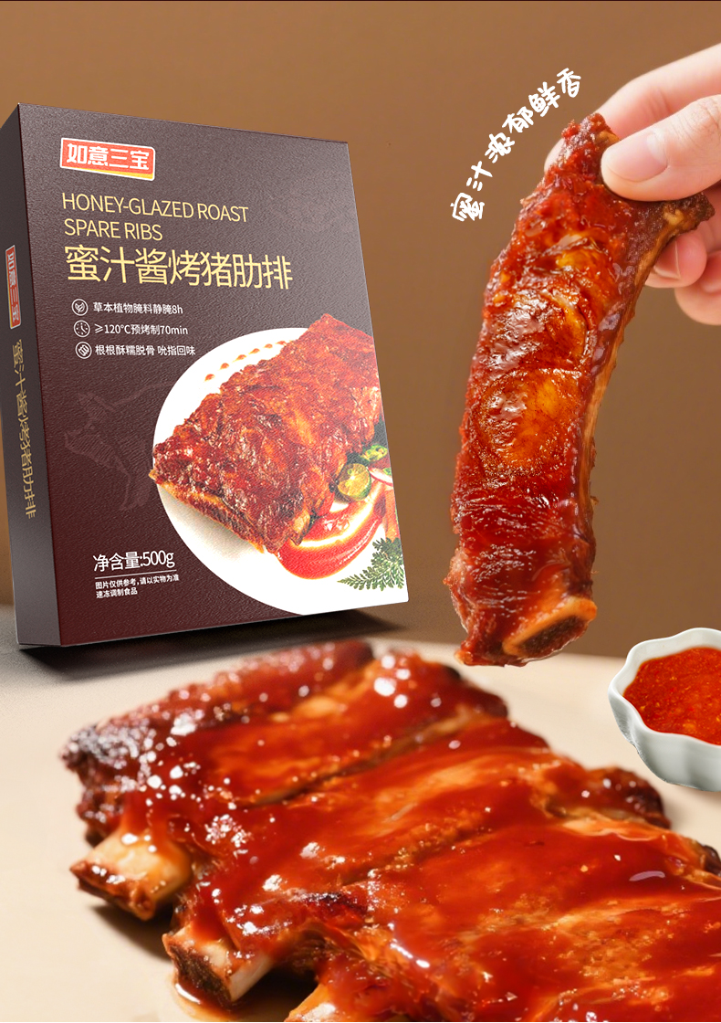 如意三宝蜜汁酱烤猪肋排(500g/盒)生产日期: 12月