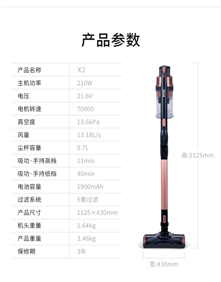 【Shark】美国Shark鲨客折叠吸尘器鲨鱼X2无线大吸力家用手持