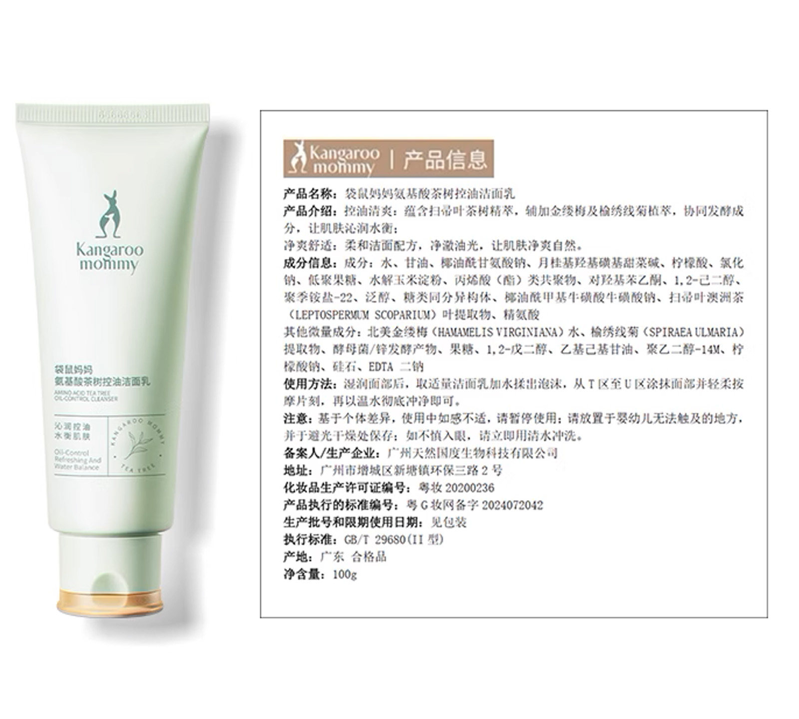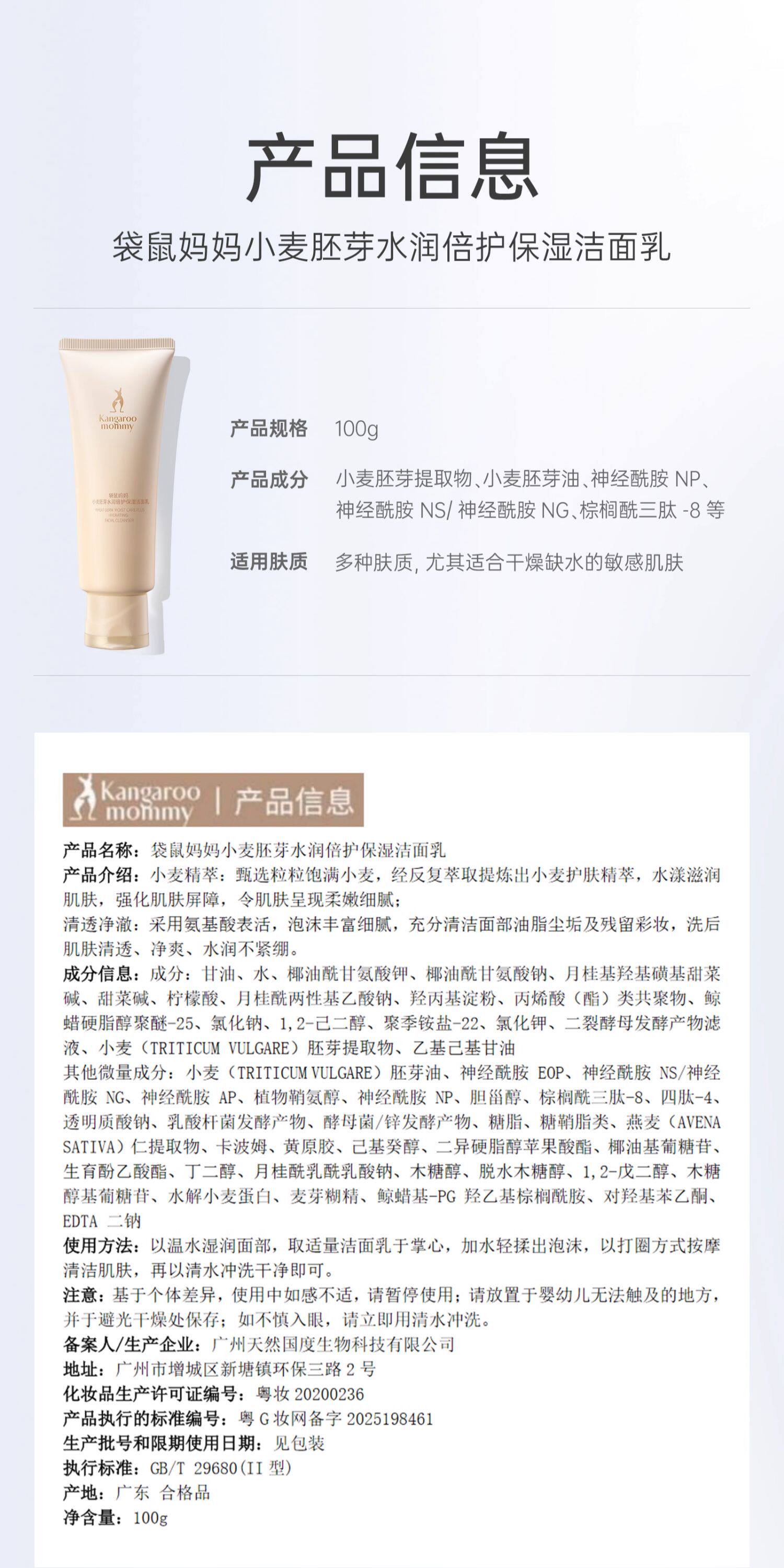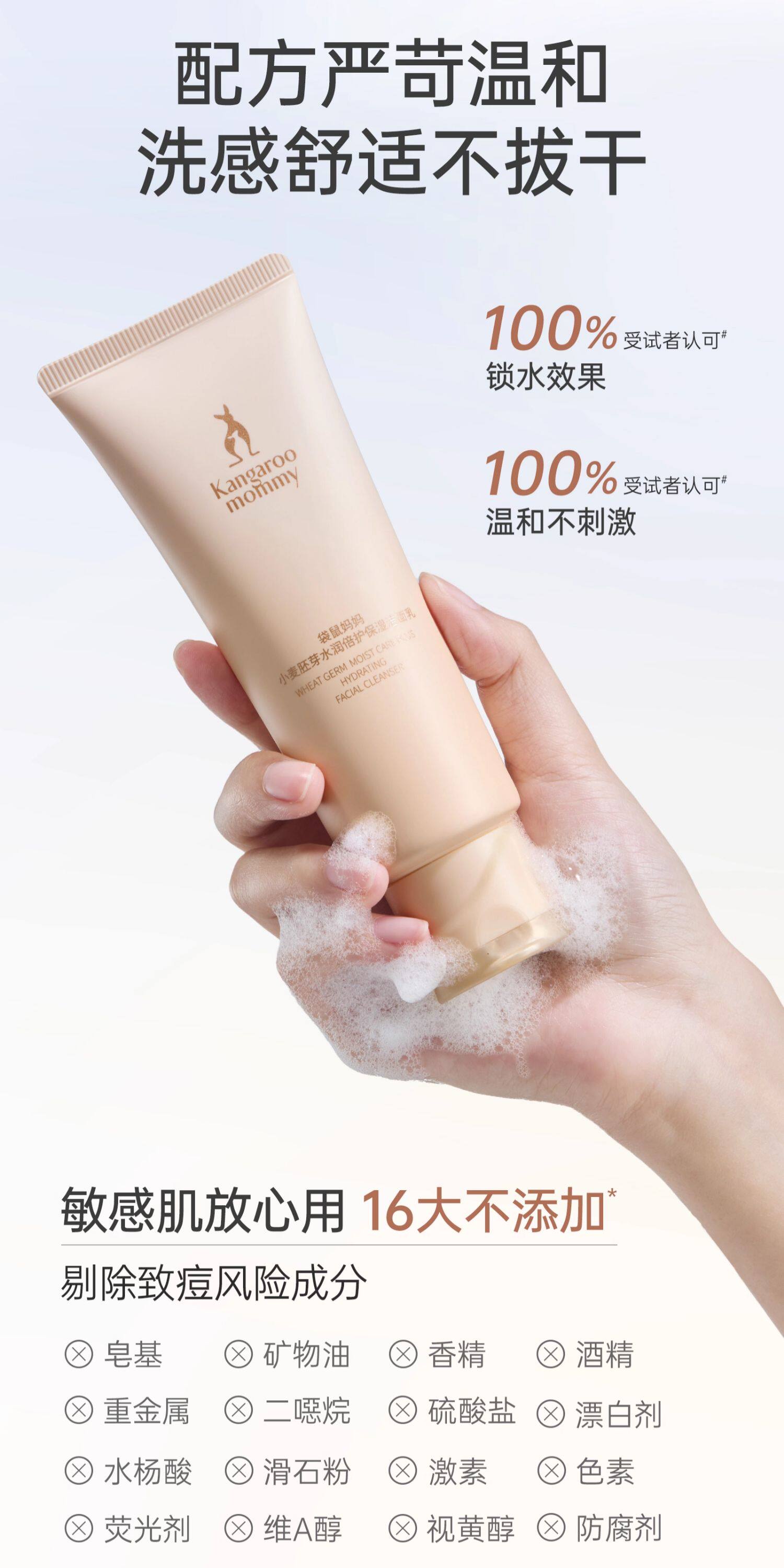 [2支装] 袋鼠妈妈洗面奶准孕妇洁面乳 氨基酸补水准孕 期护肤品