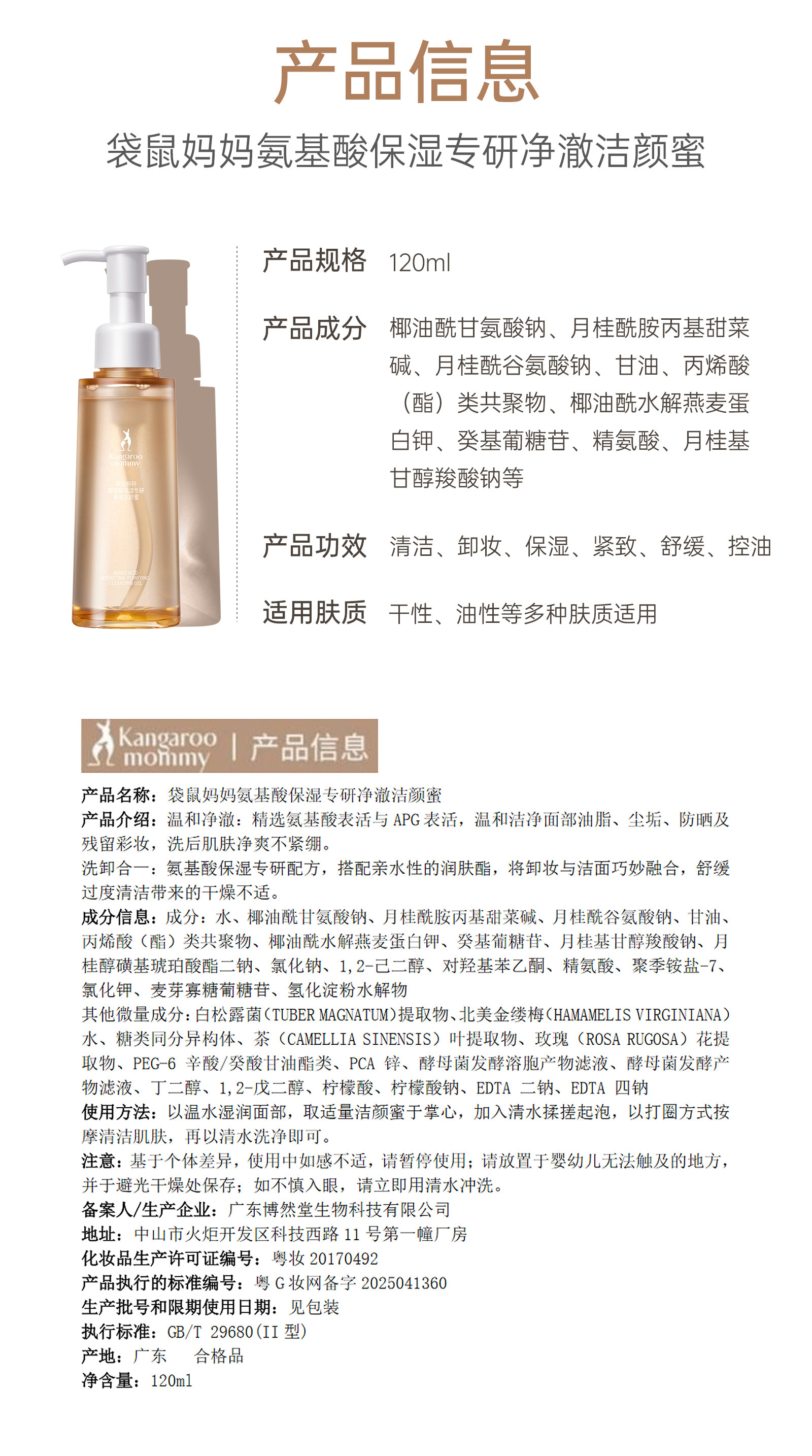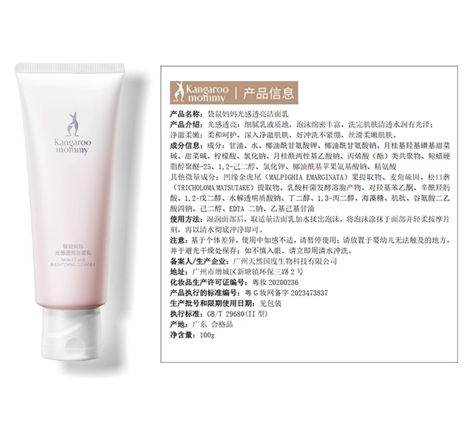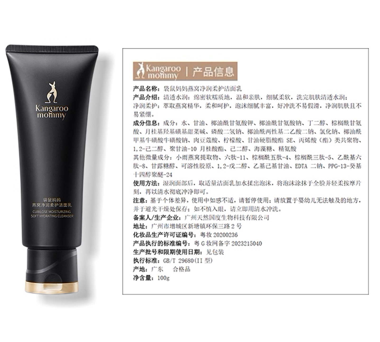 [2支装] 袋鼠妈妈洗面奶准孕妇洁面乳 氨基酸补水准孕 期护肤品