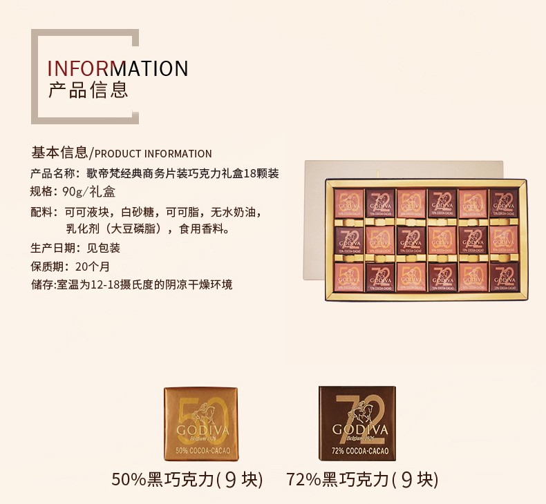 歌帝梵商务黑巧系列巧克力礼盒18片装/044758 浓郁顺滑馥郁醇香