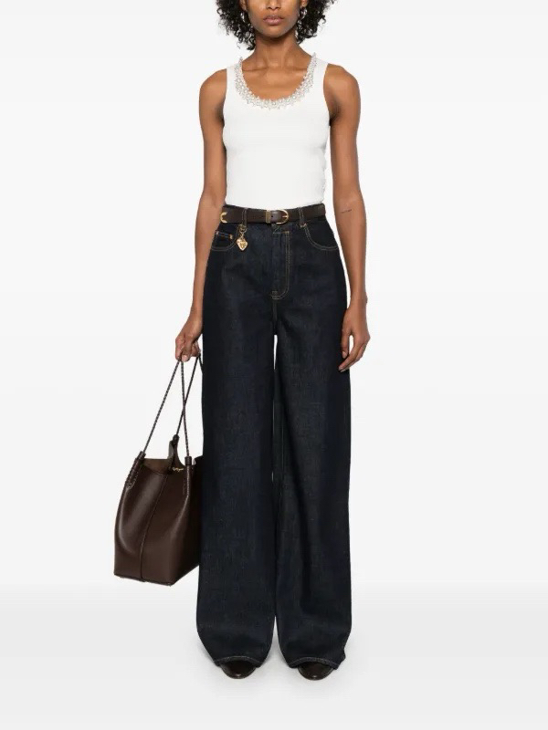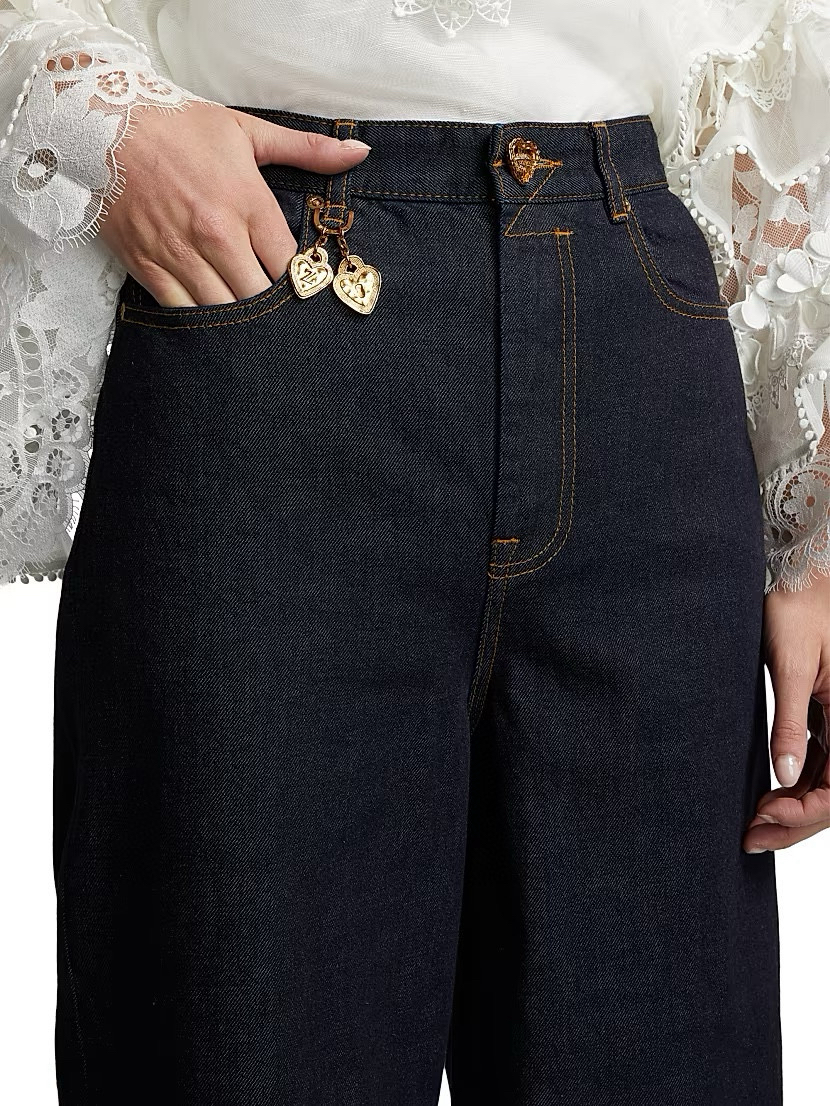 816-4 独家圆正 zimm阔腿牛仔裤 爱心扣吊坠 夸张显腰细显腿长 高个入呀