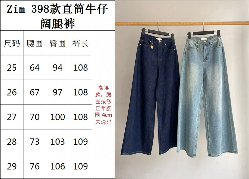 胖瓜167/136穿29码浅蓝色非常合适[合十][合十]398款zim阔腿牛仔裤