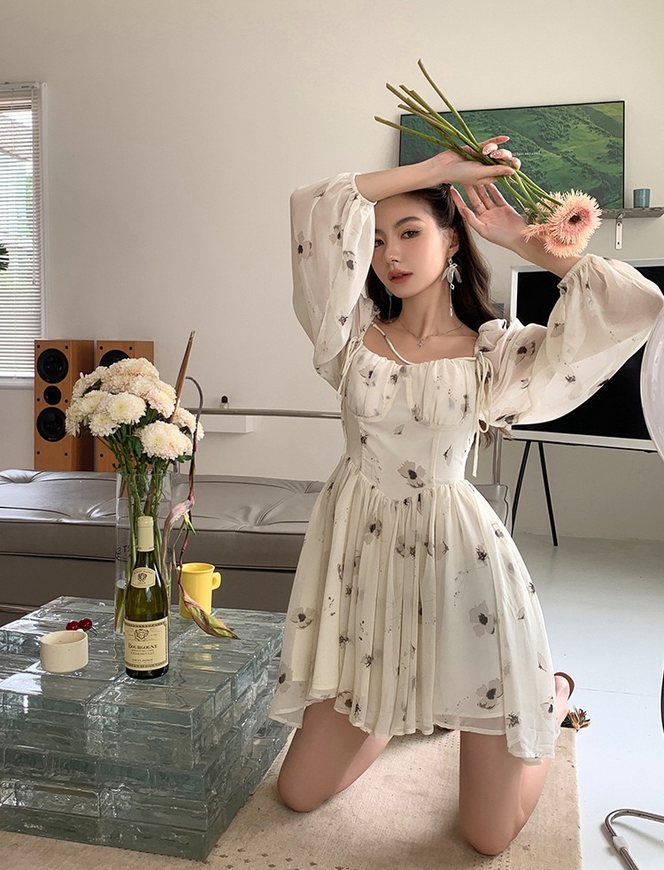 (清仓现货)【社群供G】2022初秋小众设计感法式收腰系带气质雪纺