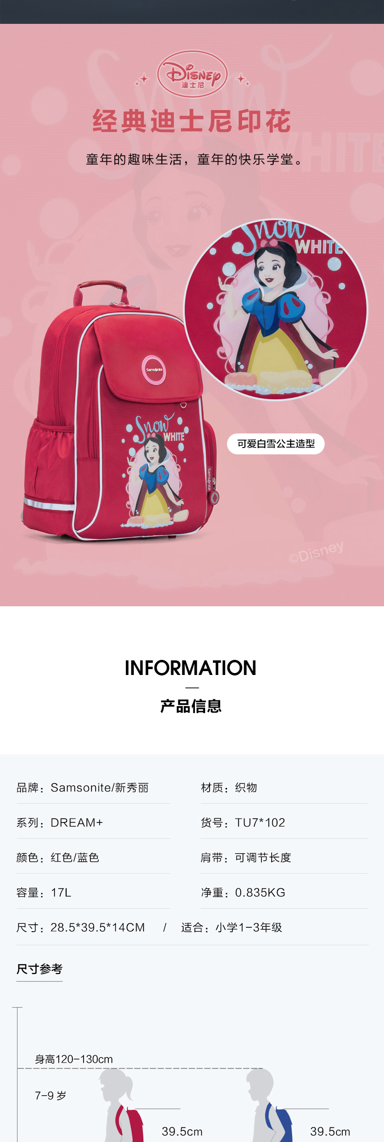 新秀丽2021年新款迪士尼图案内里抗菌面料健康儿童书包 TU7