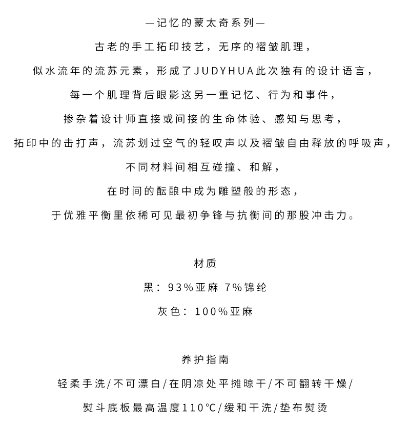 以极简建筑风格,诠释对生活美学之独特理解,JUDYHUA以作品触动您心。更多新款上架,请亲临JUDYHUA STUDIO试穿选购。预约电话:021-62663449,18201881913