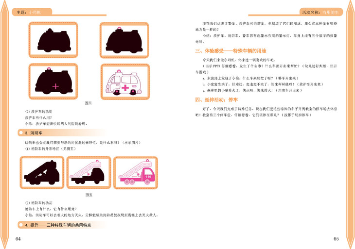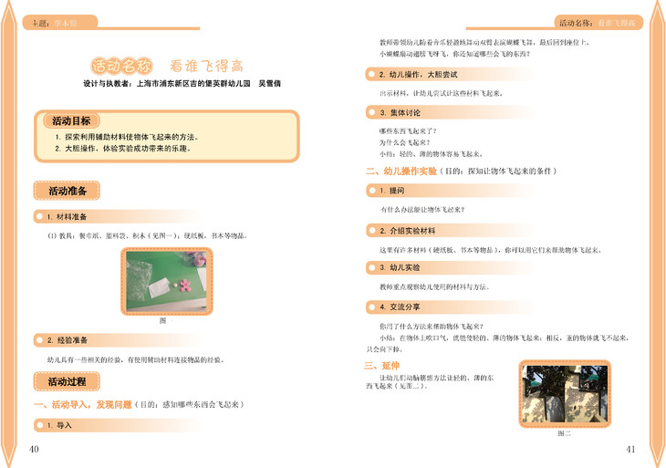 分为小班,中班,大班共三本。每册均根据主题提供精心设计的科学小游戏和小实验,详细介绍了游戏的材料、玩法,游戏前提出的问题等,并配以相应的图片。让老师能对该活动所需准备的材料一目了然。每个活动的目标,活动准备,活动过程以及活动相关拓展都十分清晰明了的展现给备课老师。