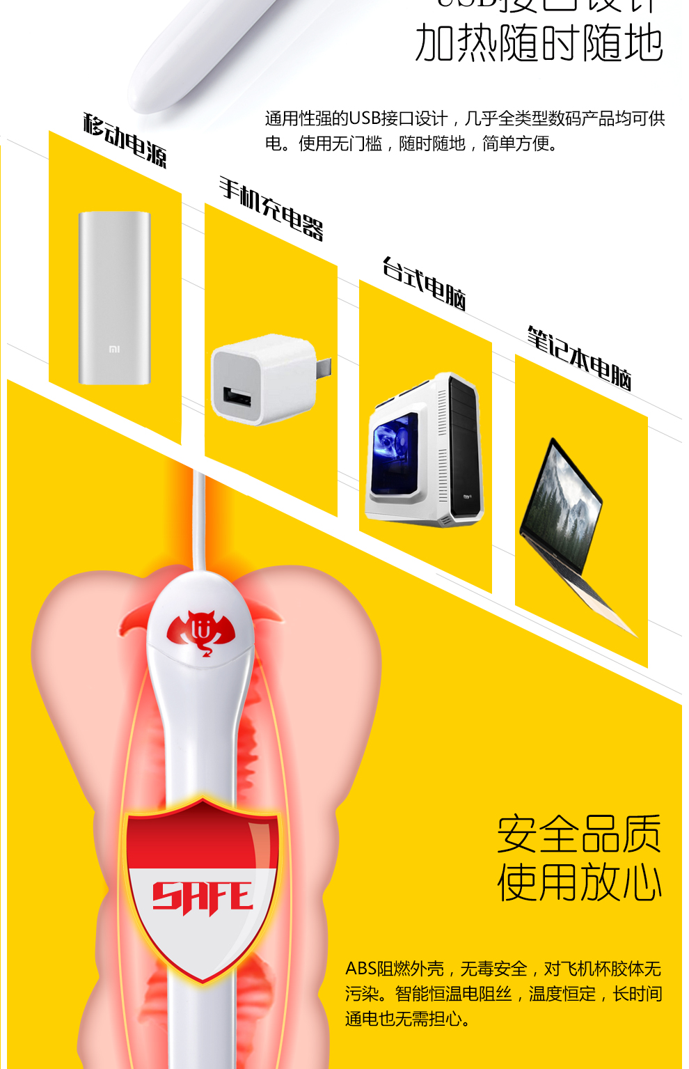 撸撸杯 USB加温棒 加热棒智能恒温成人情趣器具加温性用品 (新老包装随机发货)