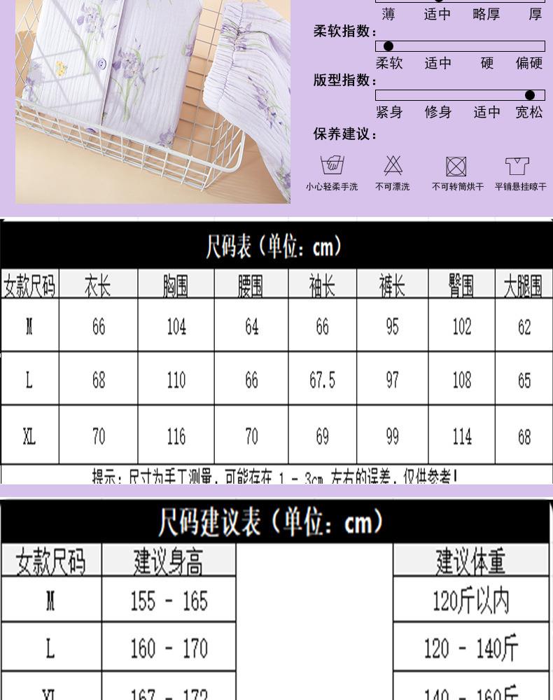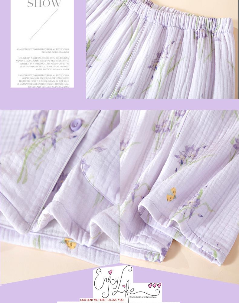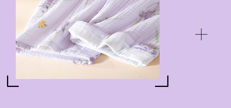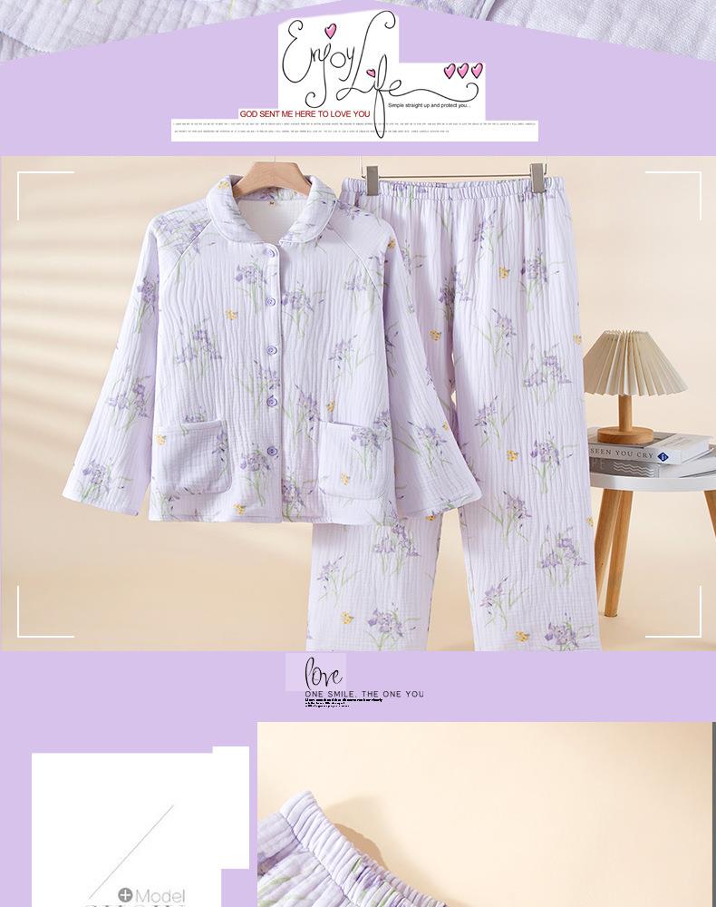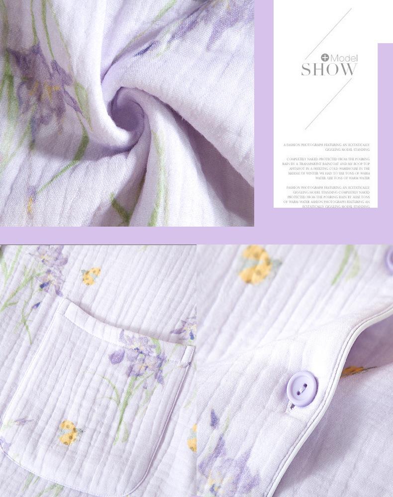 A类纯棉四层皱纱睡衣女春秋冬季鸢尾瓢虫翻领常规家居服套可外穿