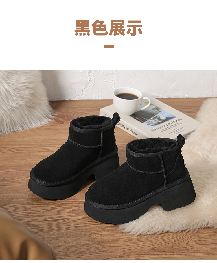 EVERAU羊皮毛一体雪地靴女士冬季新款粗跟短筒高跟女靴 UEA3014 商品图2