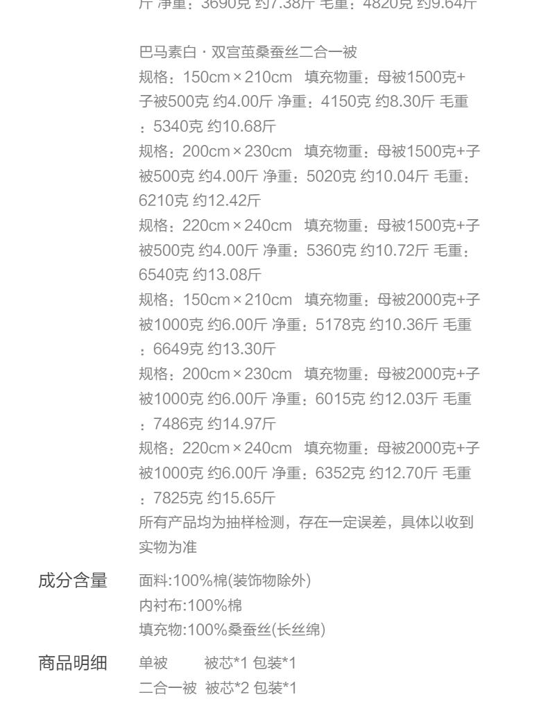 水星家纺 巴马双宫茧桑蚕丝二合一被