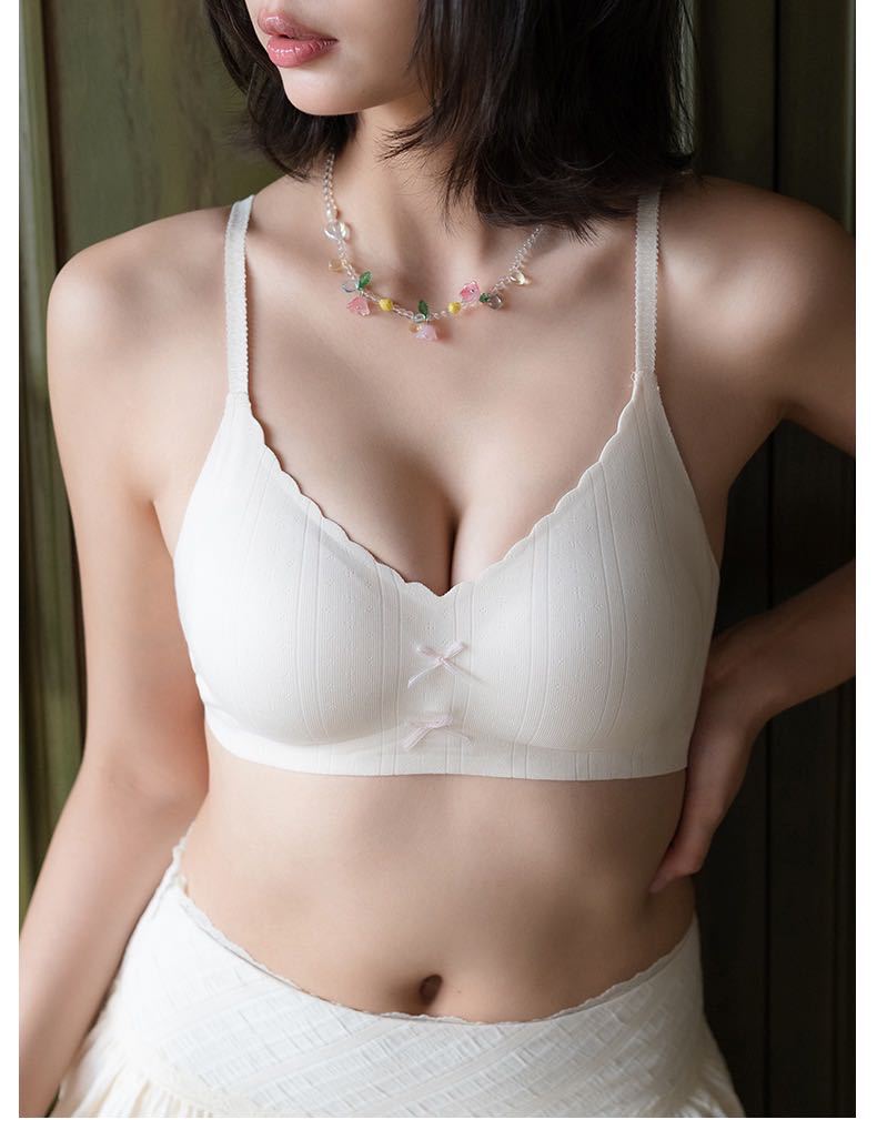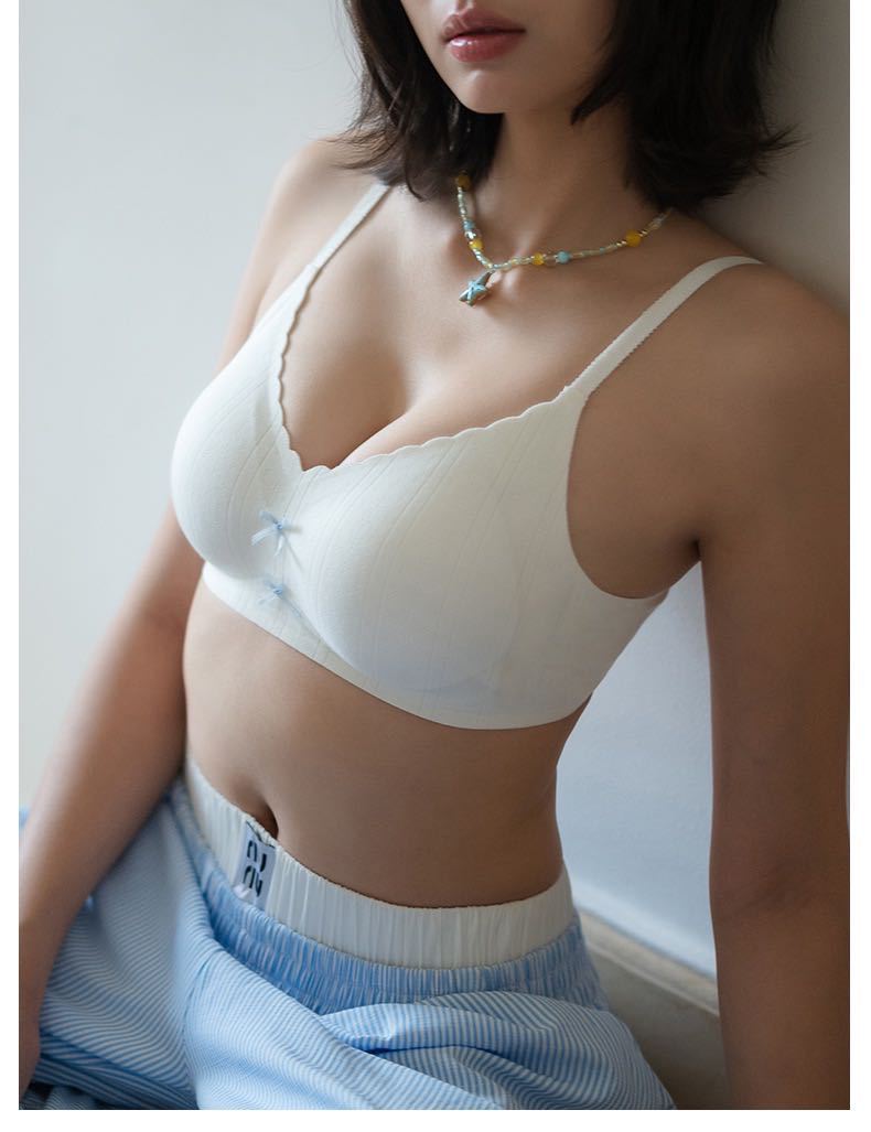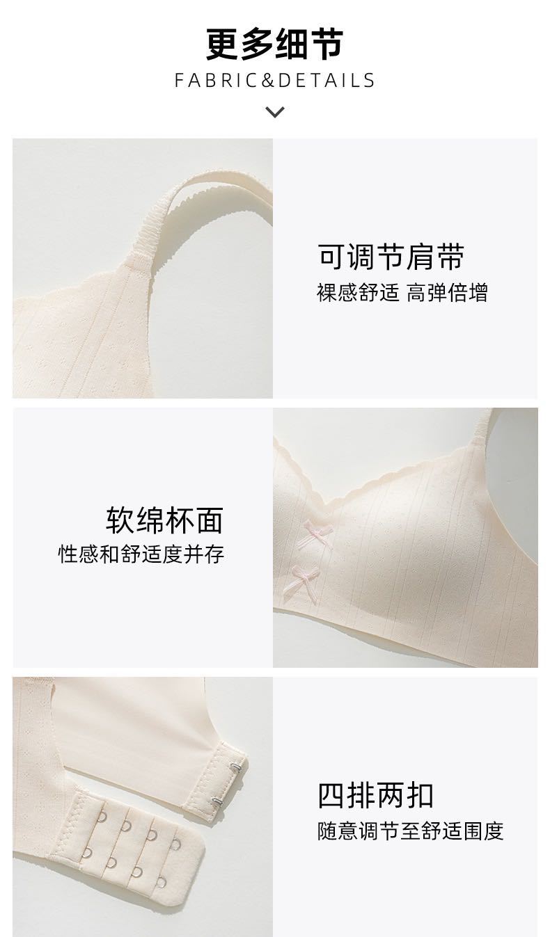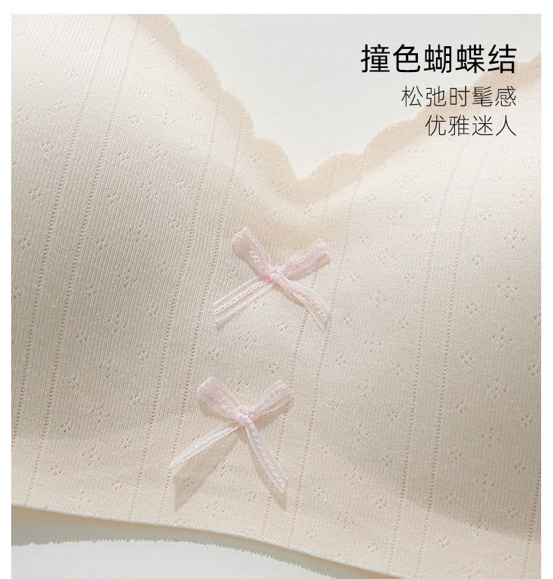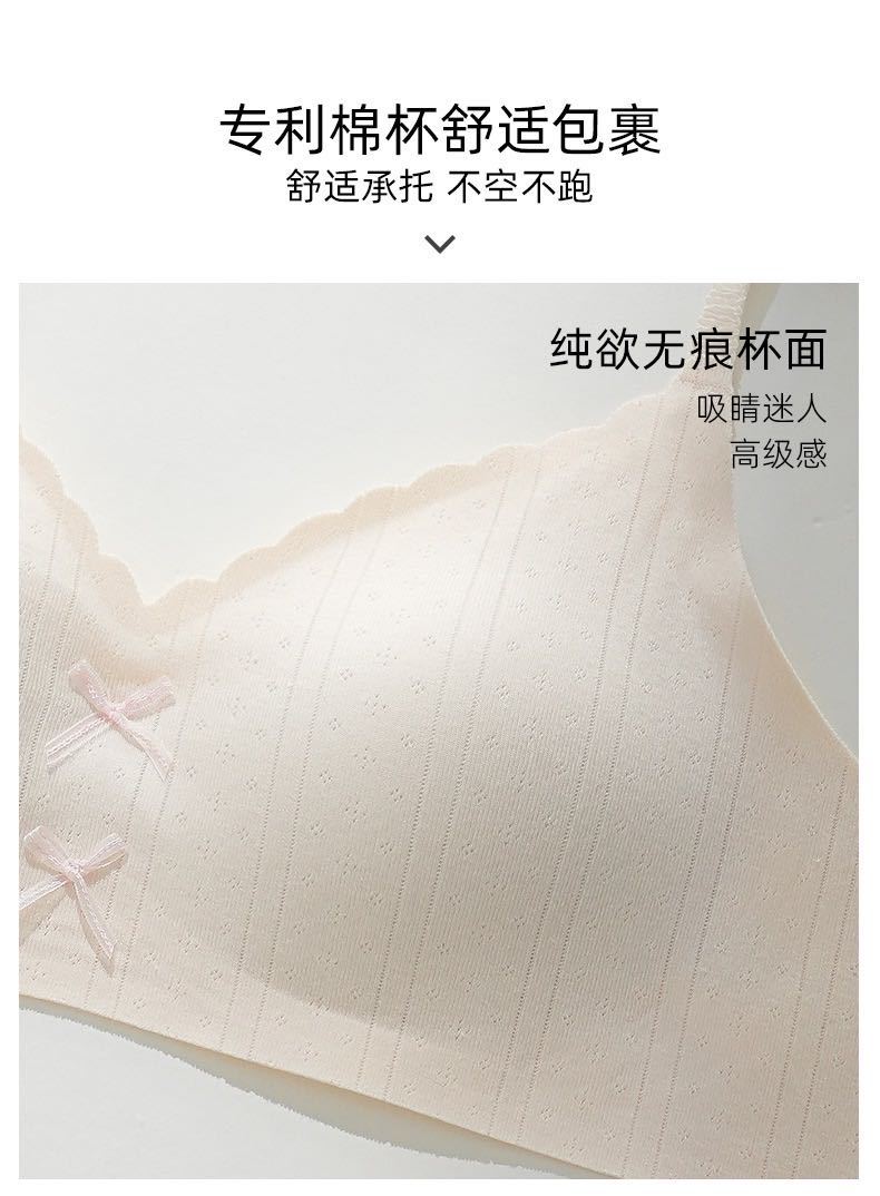 【撞色蝴蝶结❗️松弛时髦感】日系甜美蝴蝶结薄款裸感无痕舒适内衣女小胸聚拢显大无钢圈文胸罩。jc