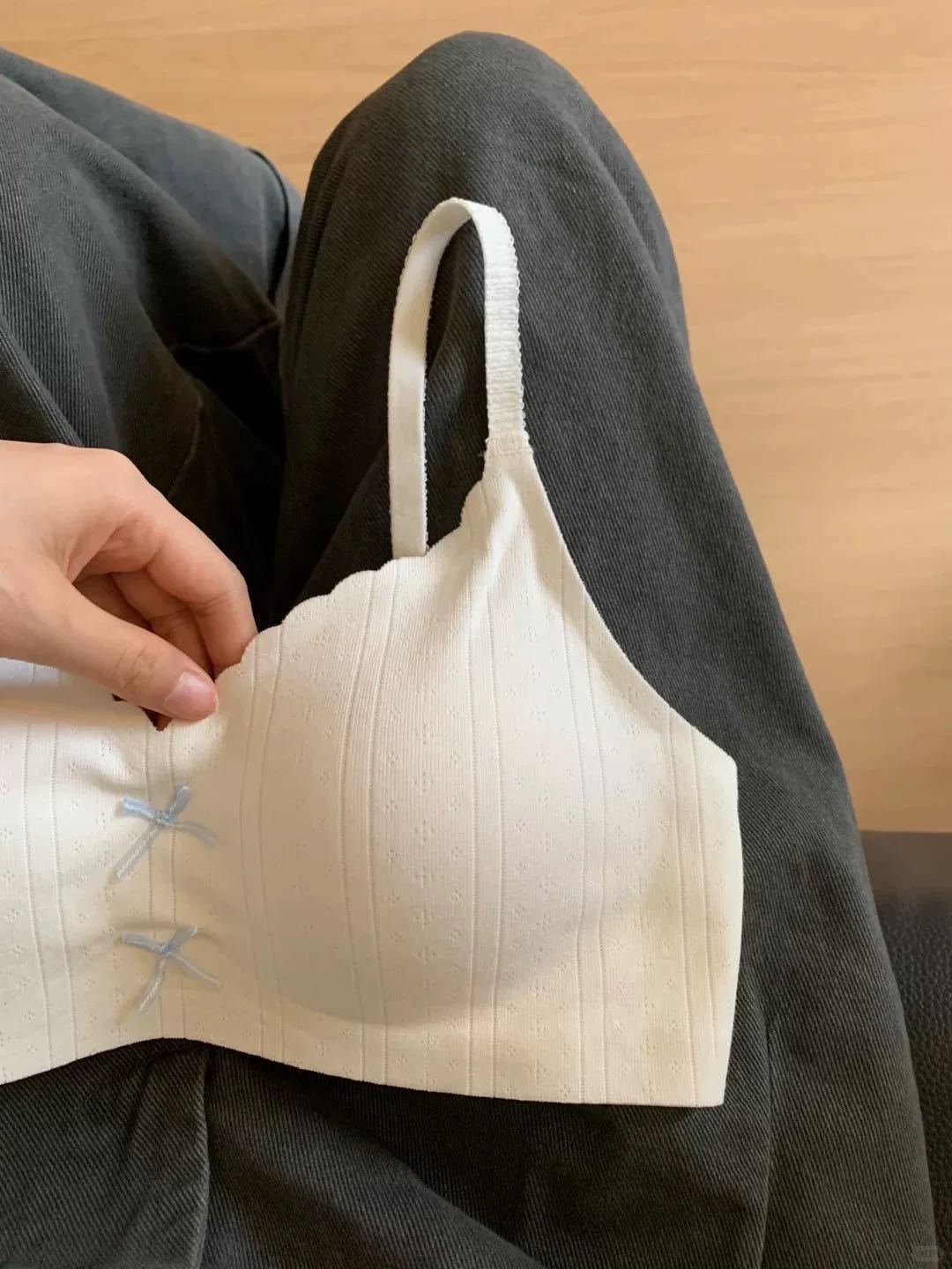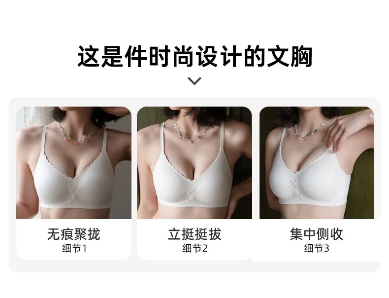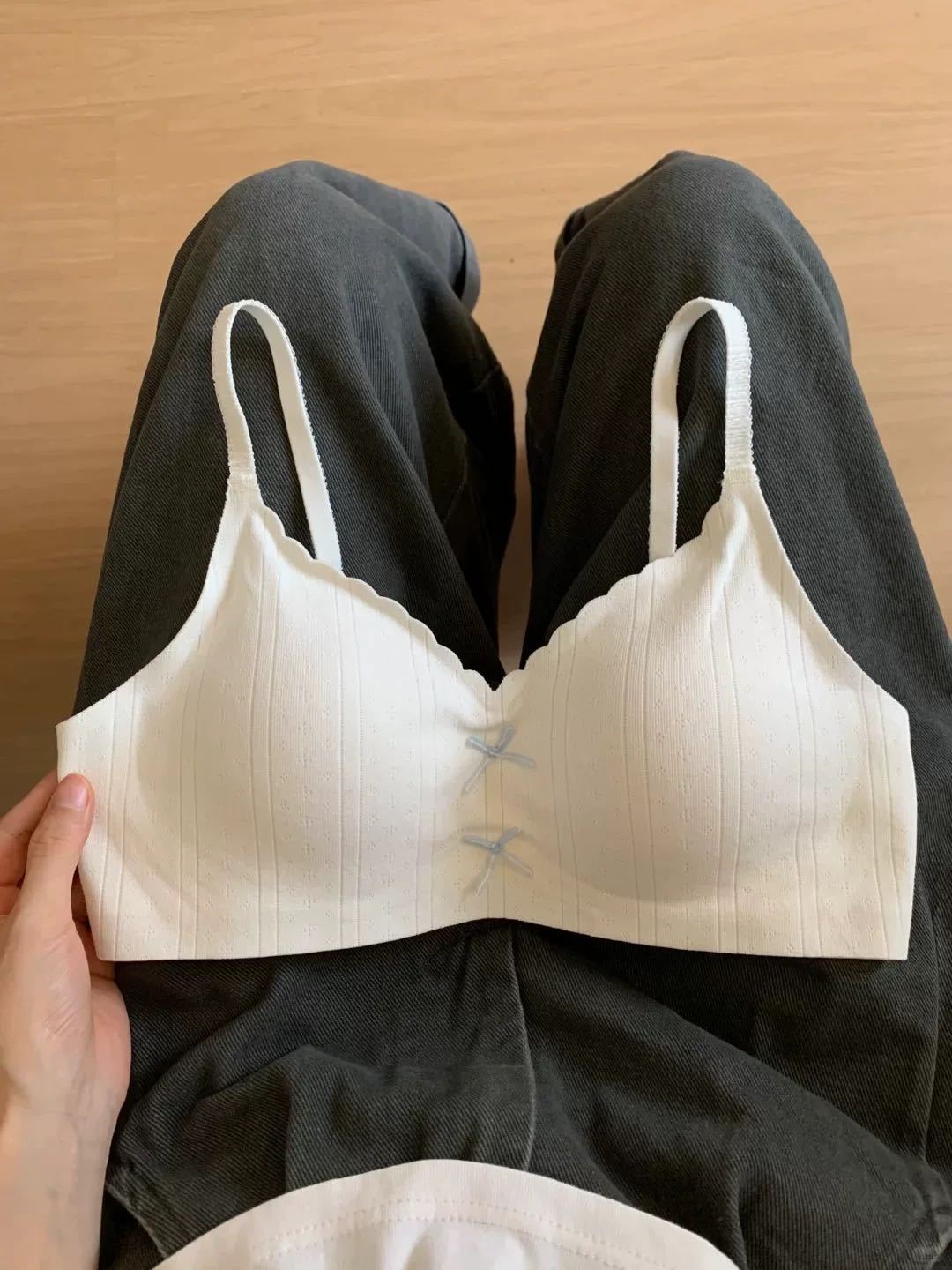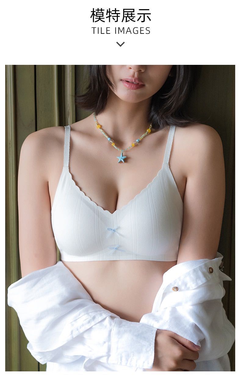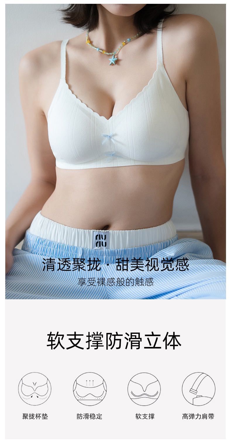 【撞色蝴蝶结❗️松弛时髦感】日系甜美蝴蝶结薄款裸感无痕舒适内衣女小胸聚拢显大无钢圈文胸罩。jc