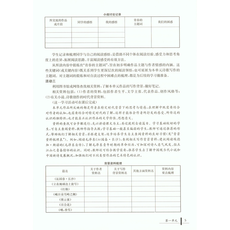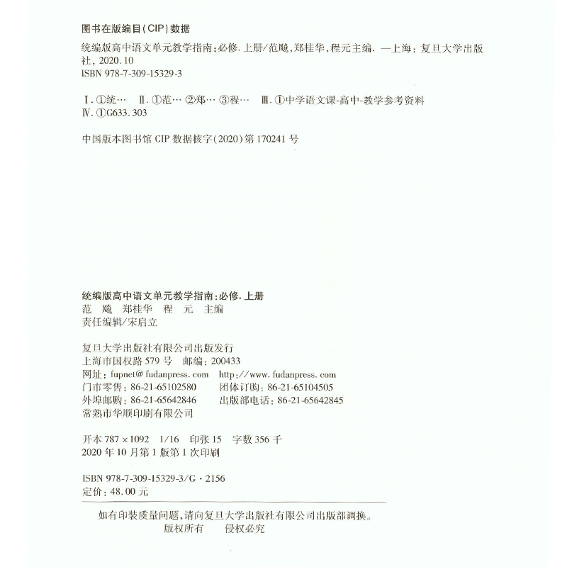统编版高中语文单元教学指南 必修上册 高一年级上册/高1第一学期 教师教学指导用书 复旦大学出版社