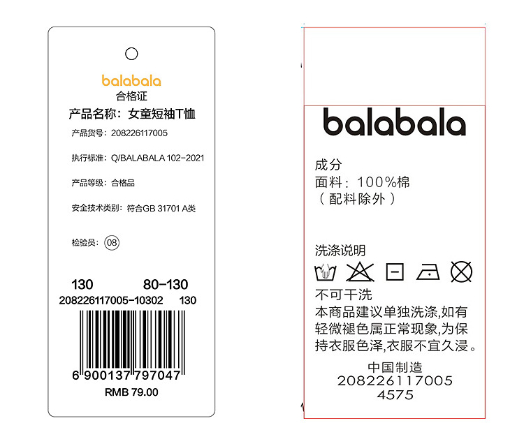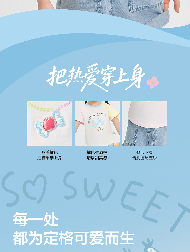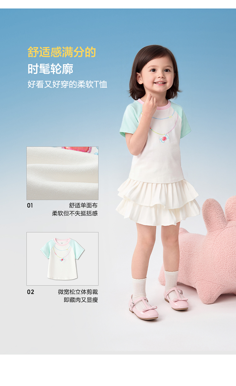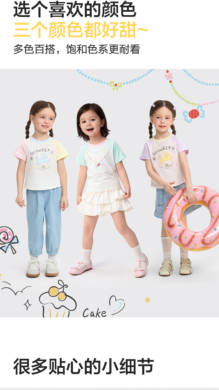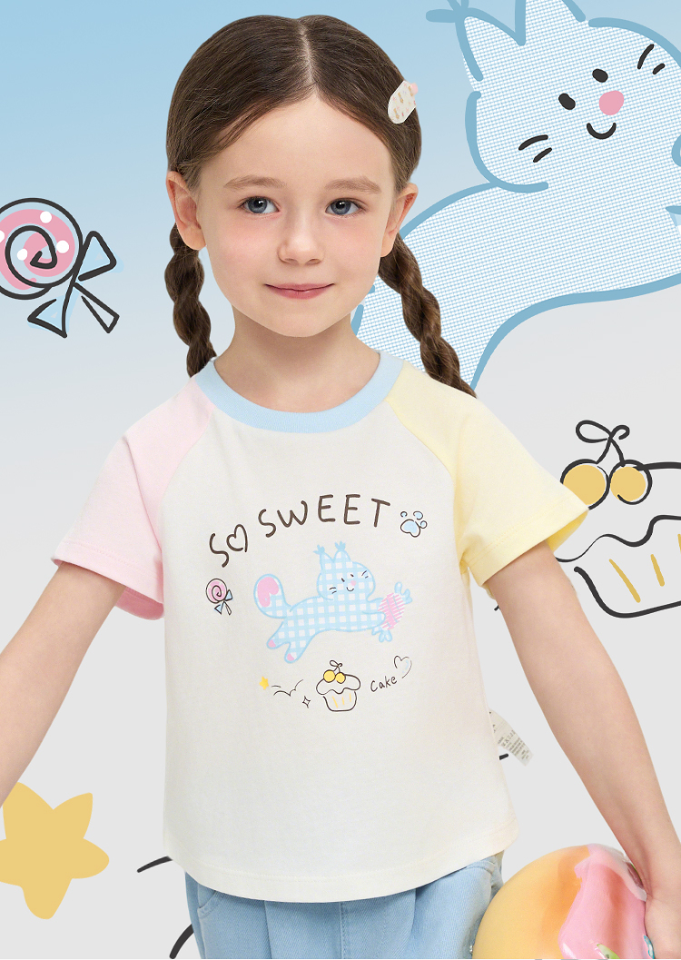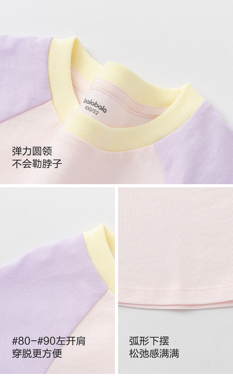 【balaOne】巴拉巴拉儿童短袖t恤女童2026新款夏装撞色插肩袖上衣