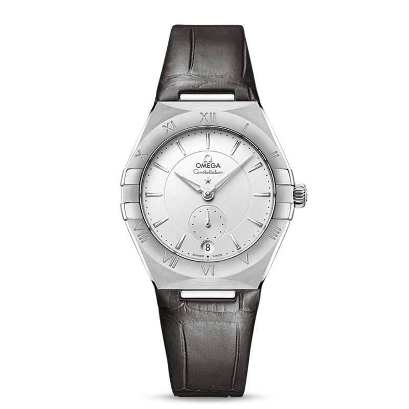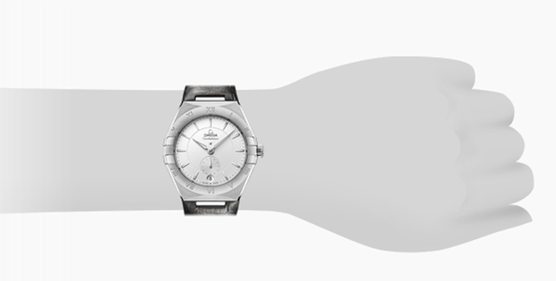 镜面材质 | 蓝宝石水晶玻璃 | 表盘 | 精钢表壳 表圈镌刻罗马数字刻度,冰霜银色表盘的6点位设有圆形日历窗。抛光小时刻度、指针、欧米茄品牌标志以及星徽标志均以白色18K金打造,小秒盘和中央分钟圈饰以圆环。 日期显示 背透 |