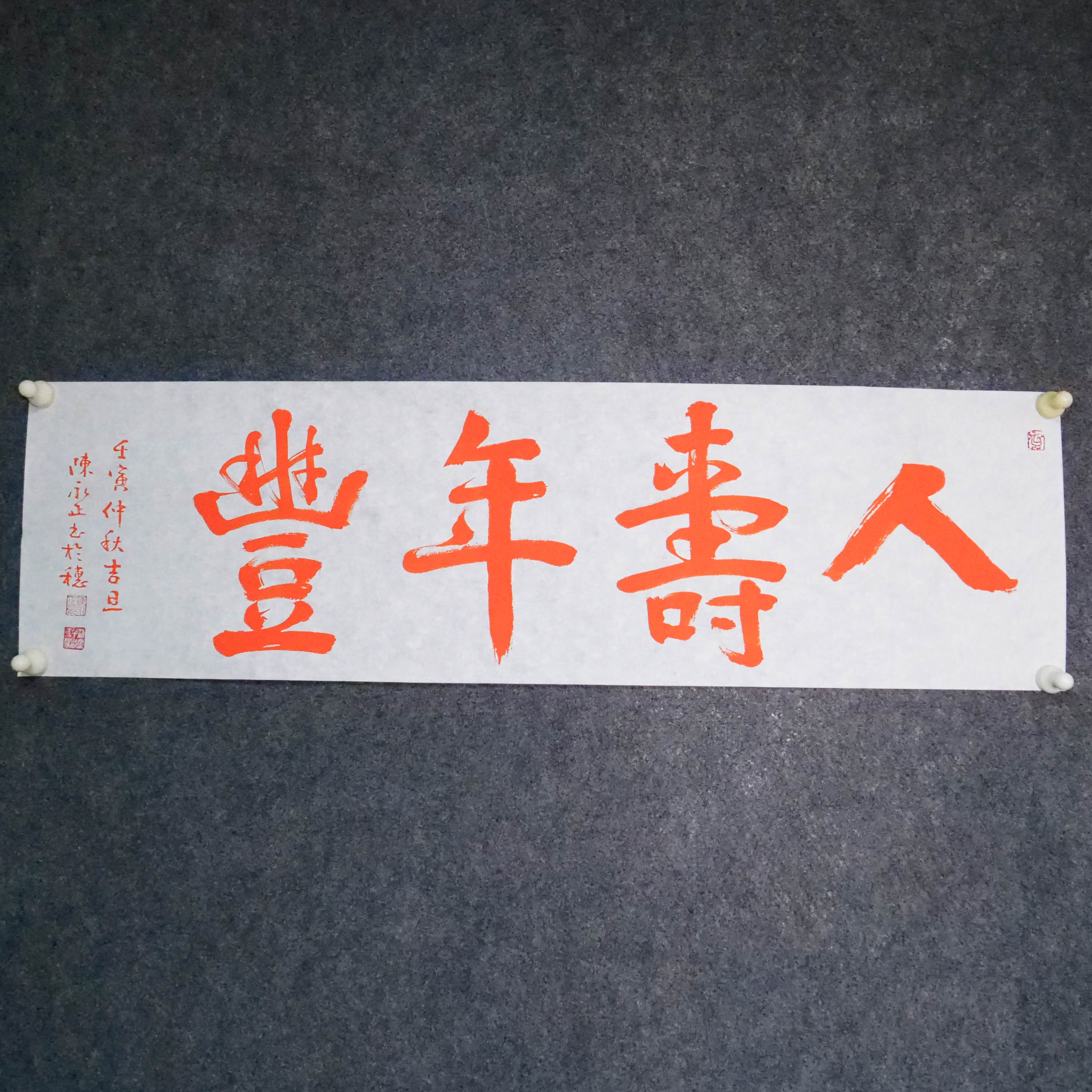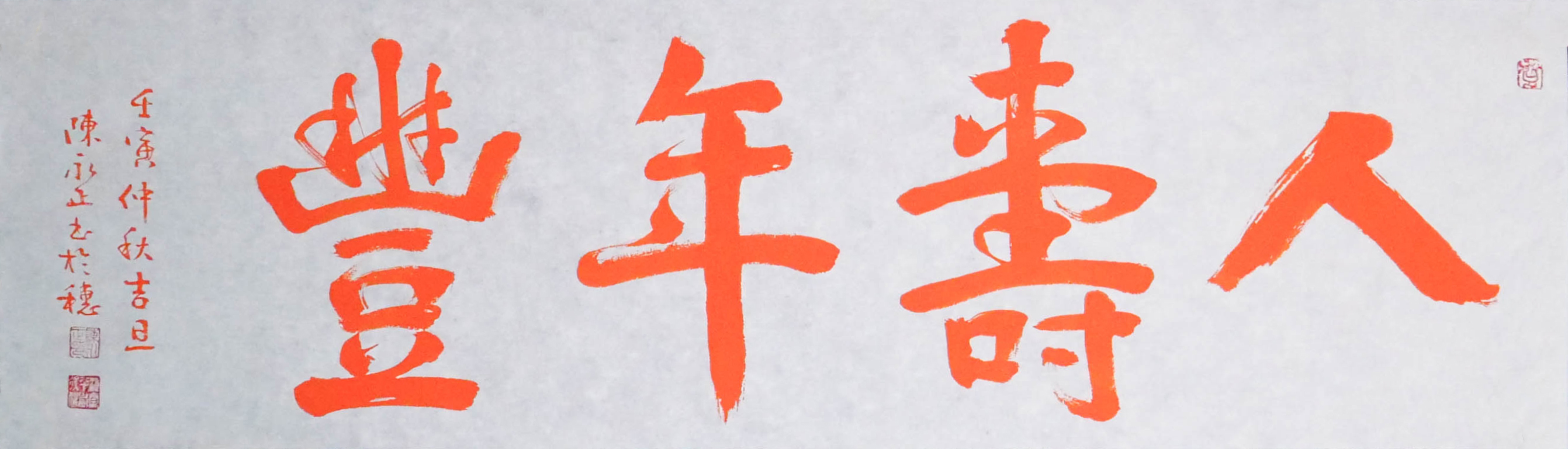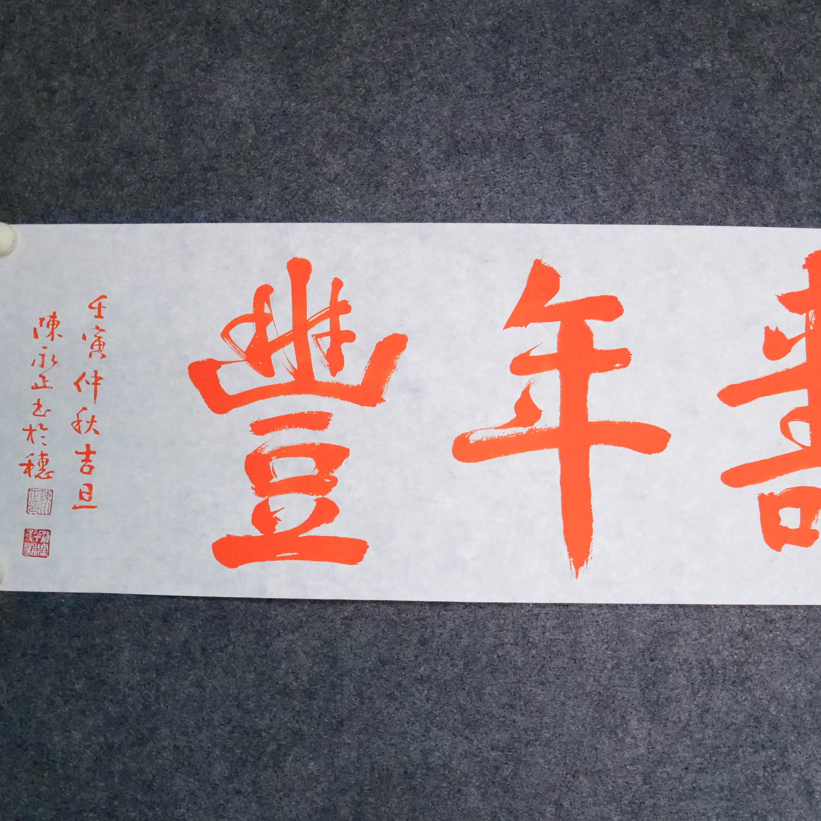 陈永正《人寿年丰》书法原作28CM*96CM 手写宣纸朱砂吉语