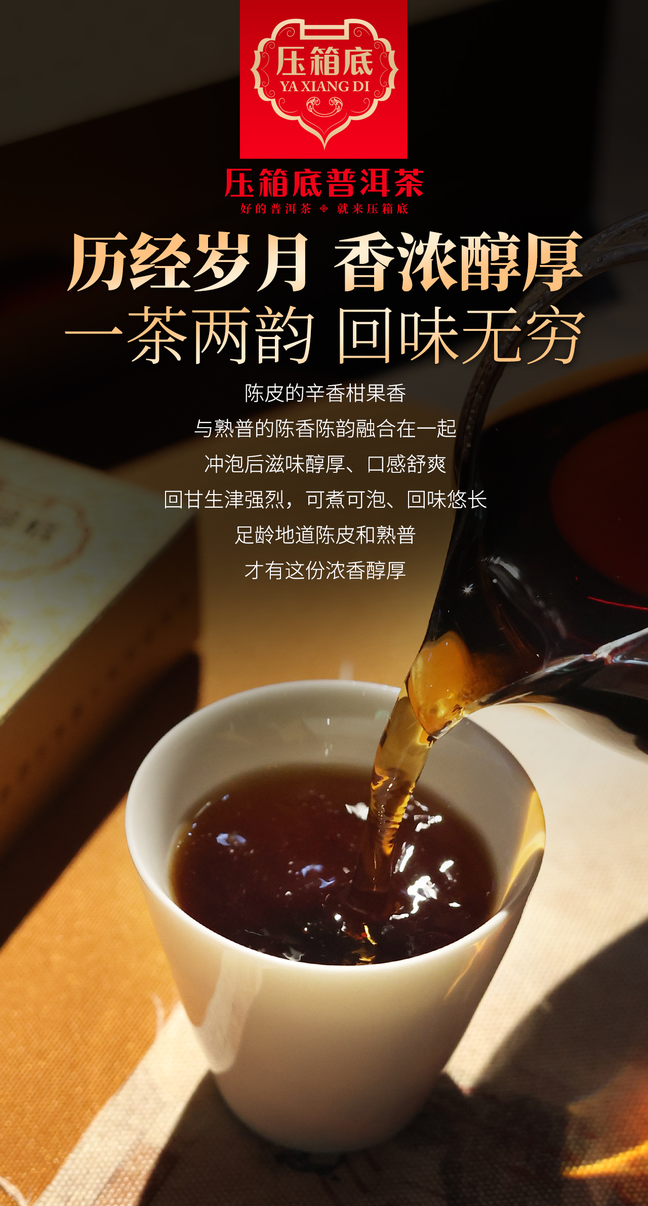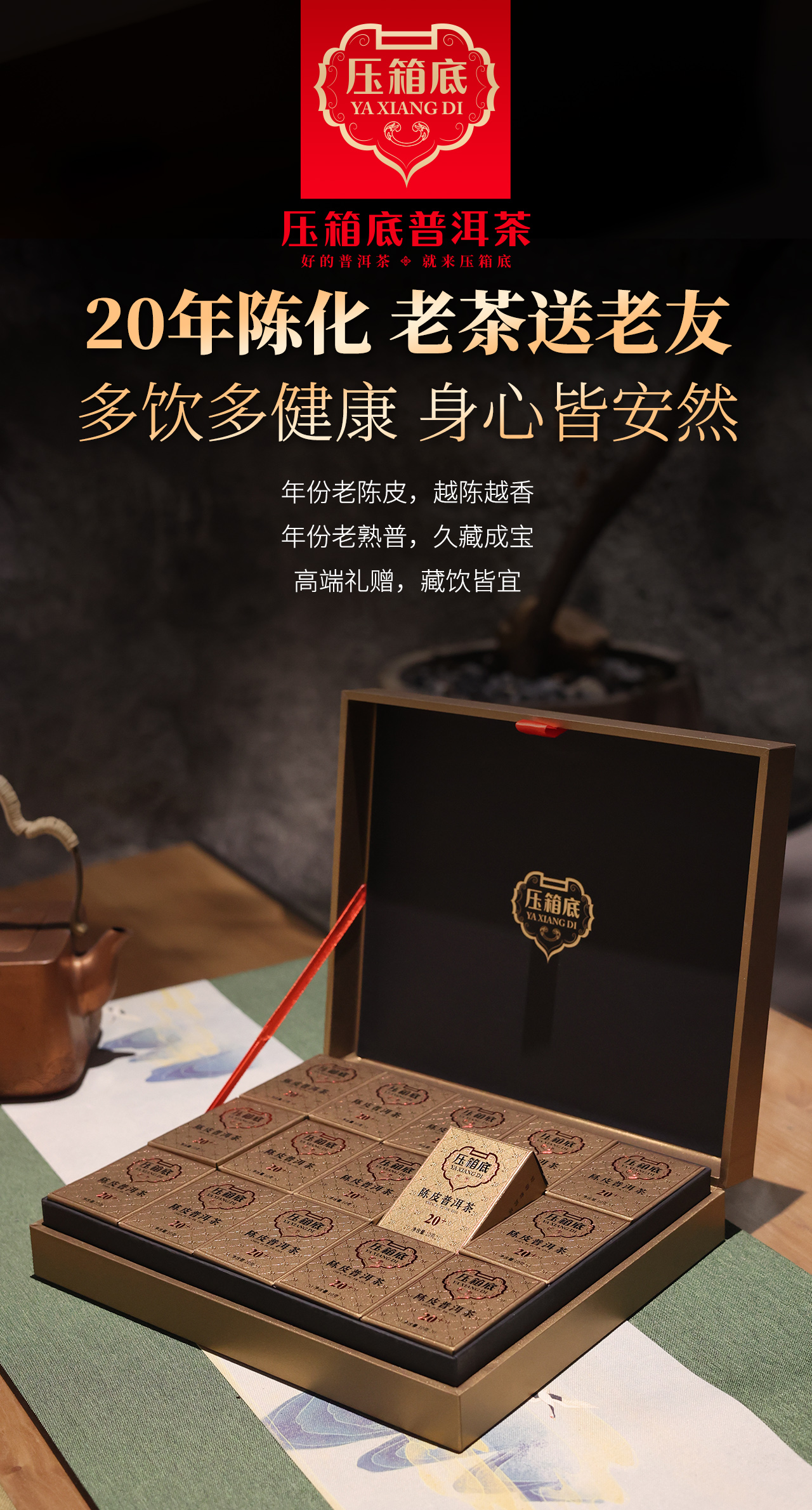 压箱底品牌,专注于打造可收藏、可传承、可送礼、可纪念人生重要时刻的中高端茶品。