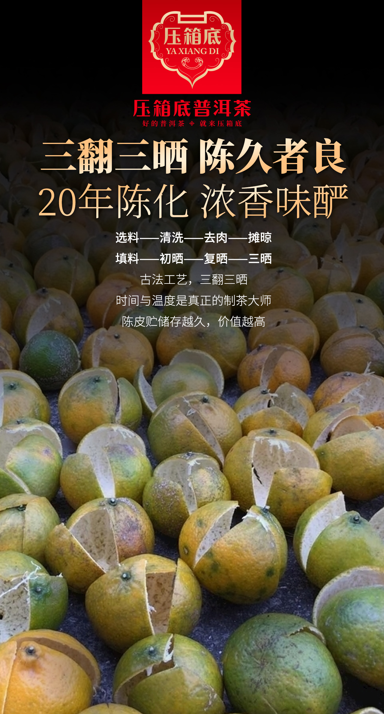 压箱底·陈皮普洱茶 20+年 普洱熟茶 新会陈皮 15泡/150克