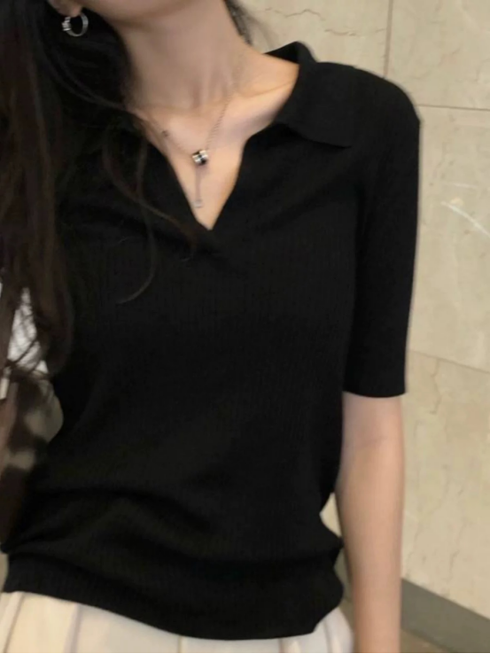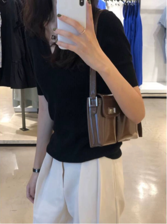 ☺️【MOMOTIABIN·新款半开领T恤XZA92】✅经典耐看V领开的深度刚好蛮显颈脖修长的 ❤️拿到手不夸张的说是你们会收了一色🏆还想再收一色那种