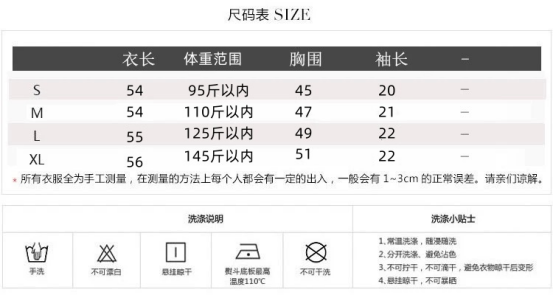 因显示器,拍摄光线,角度不同存在些许色差,请以收到的实物为准,色差情况属正常情况;服饰类存在轻微线头,属于正常现象不在售后范围内;深色衣物首洗可能略有浮色属正常现象,不在售后范围内