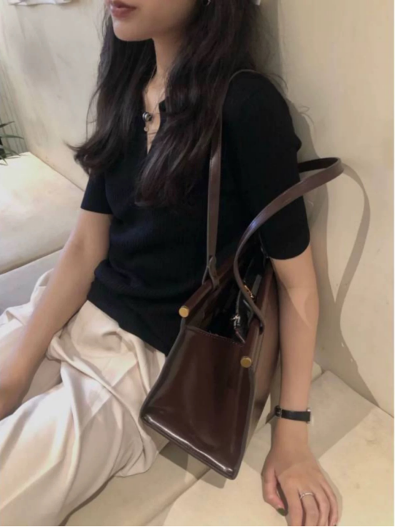 最喜欢这种简单里面又不缺小心机的单品, 很日常也能吸引别人的视线 焦点就自然而然的到你身上啦,肩部收褶的设计, 使肩膀的弧度很好看,包容性强