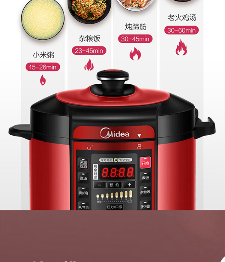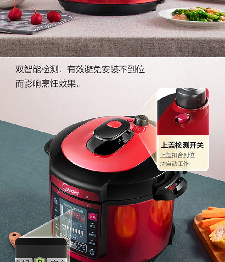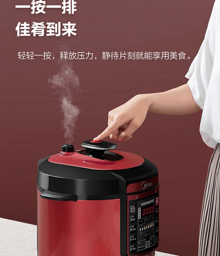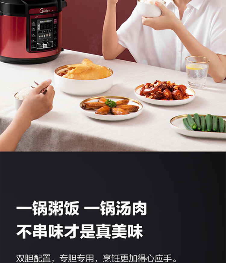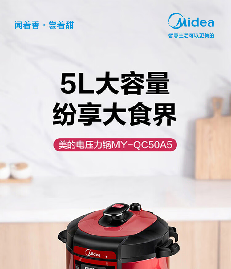 美的(Midea)智能电压力锅 5L 多功能 不粘 双胆 浓香收汁 七段调压 一键排气高压锅WQC50A5