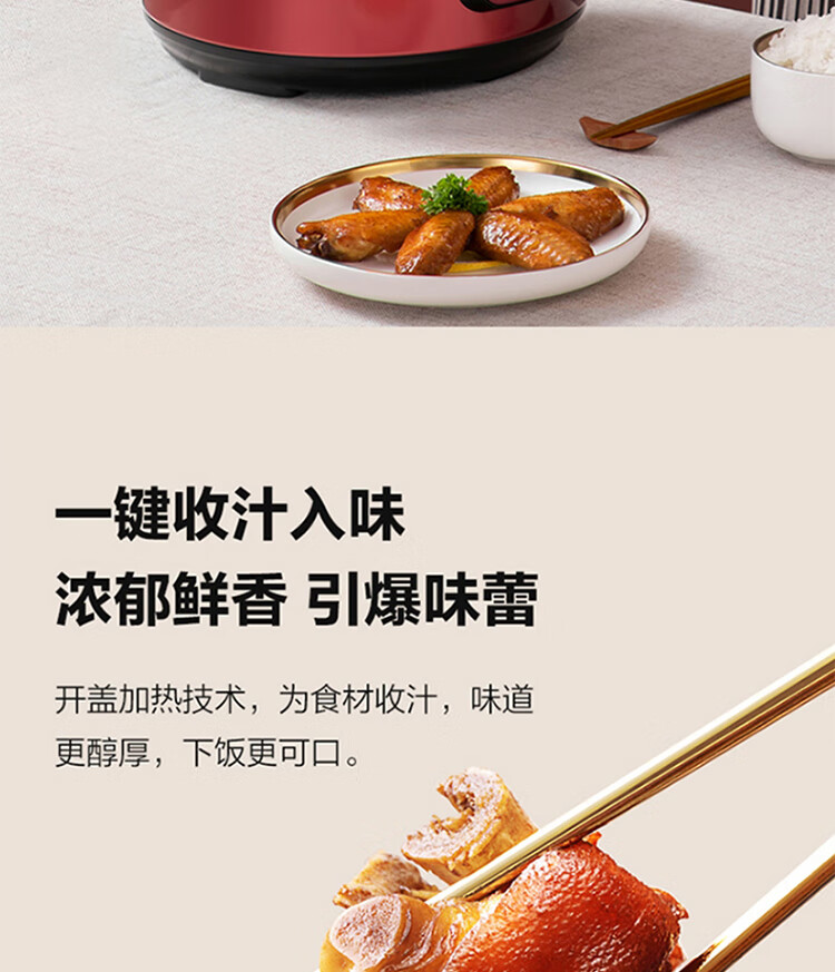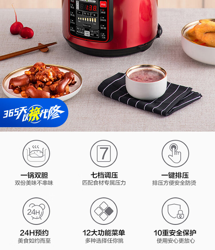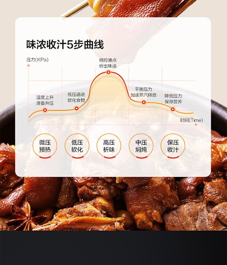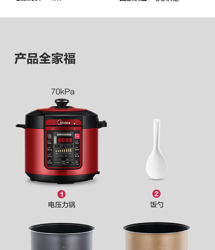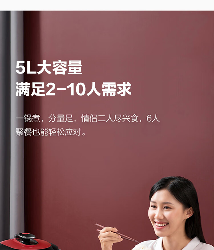 美的(Midea)智能电压力锅 5L 多功能 不粘 双胆 浓香收汁 七段调压 一键排气高压锅WQC50A5