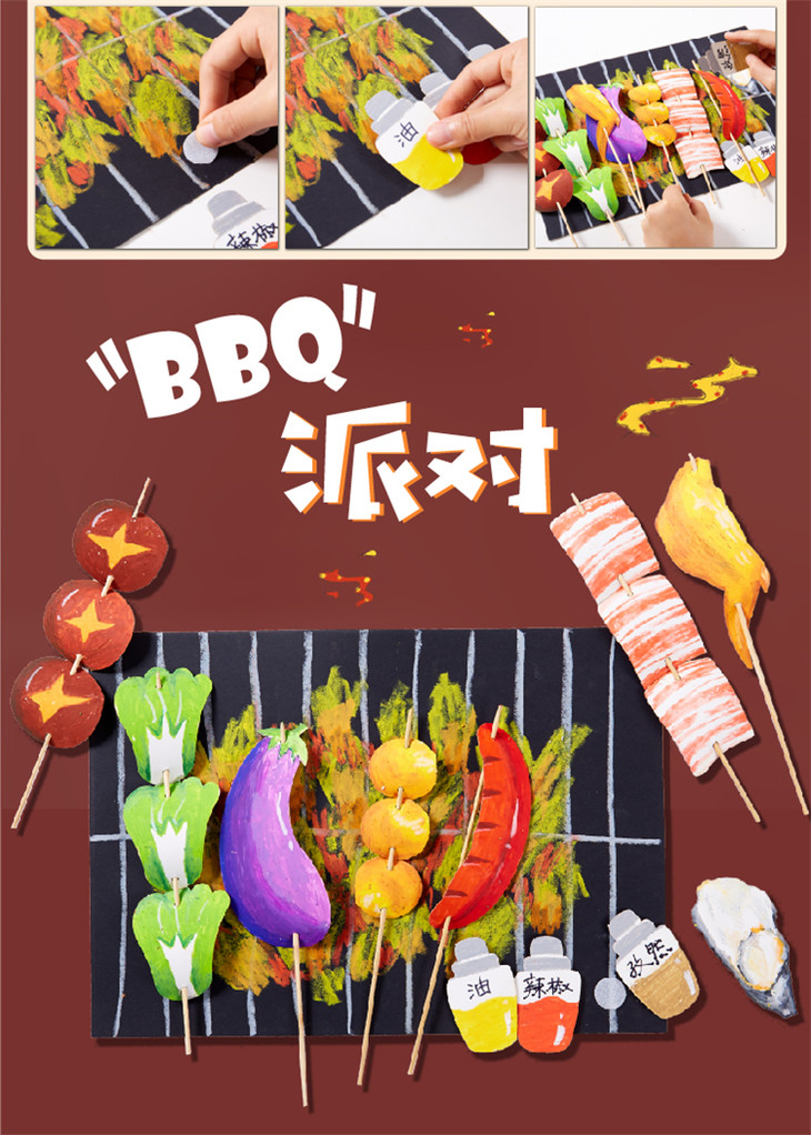 BBQ派对 儿童创意美术手工diy卡通贴画材料包涂色幼儿园纸质制作