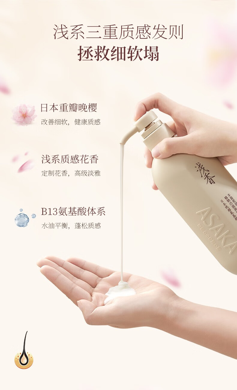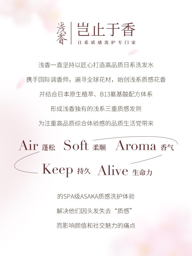 浅香(ASAKA)日本晚樱洗护套装控油滋养顺滑保湿氨基酸去屑洗发乳液三件套盒 香榧洗发500+沐浴500+顺滑膏500g