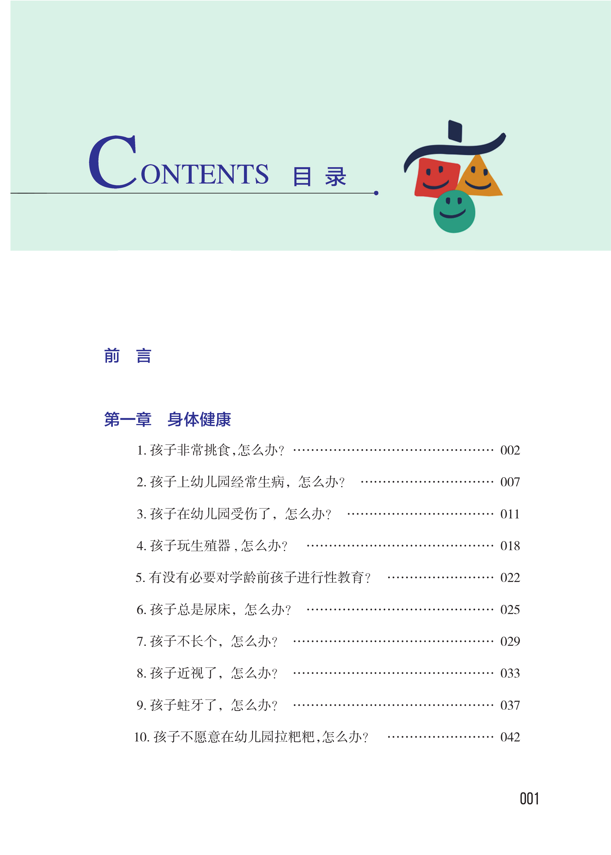 当今的家长,对孩子的发展、对孩子成长中出现的问题非常关心,但有时由有心无力,不知该如何下手。除了家长,对孩子最了解的人可能就是幼儿园老师。这本书从幼儿园教师和专业教育者的视角出发,聚焦目前比较热点的,家长和教师关注较多的幼儿问题,比如习惯、卫生、安全、健康、幼小衔接等问题,采用一问一答的形式,抛出问题、解决问题。这本书既有科学的理论指导,又有实际操作的可行方法,实用性较强,能够清晰明了地告诉家长遇到问题怎么解决。
