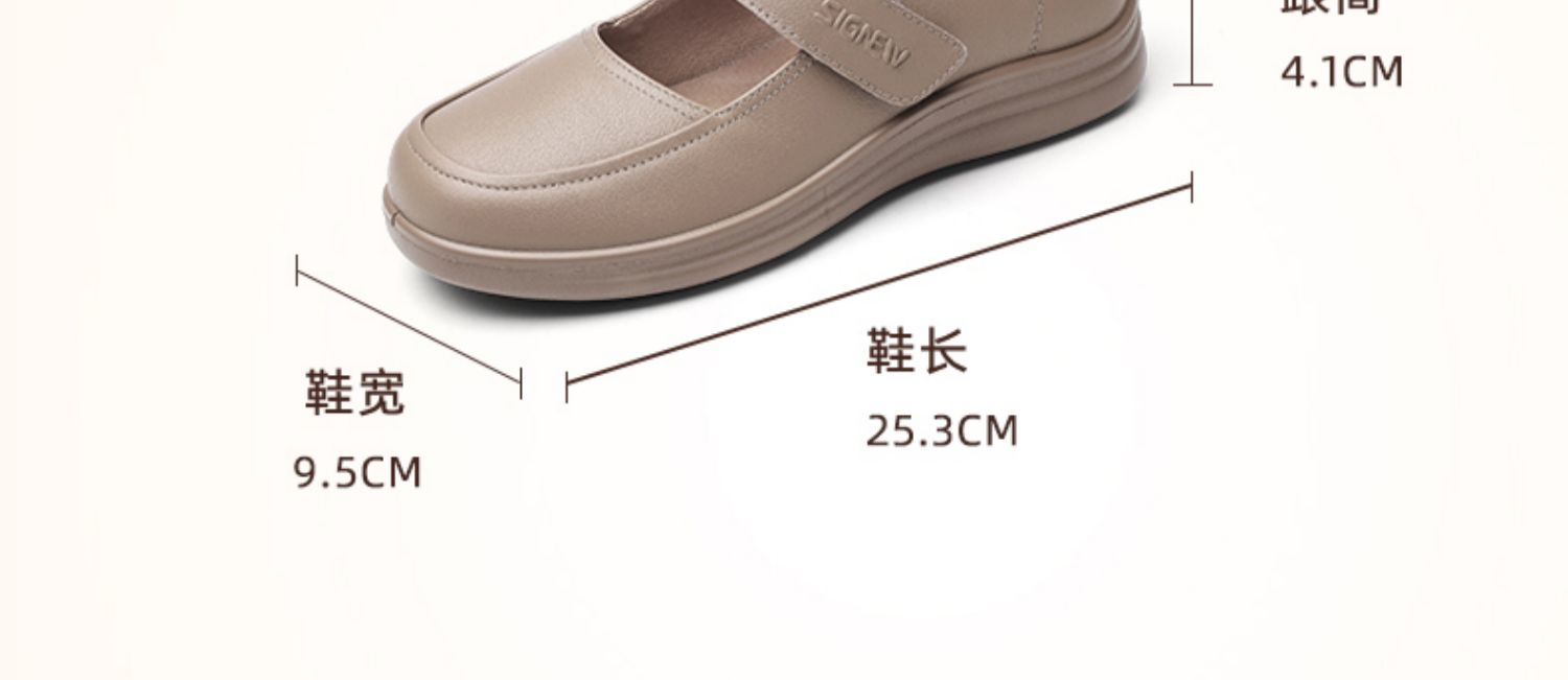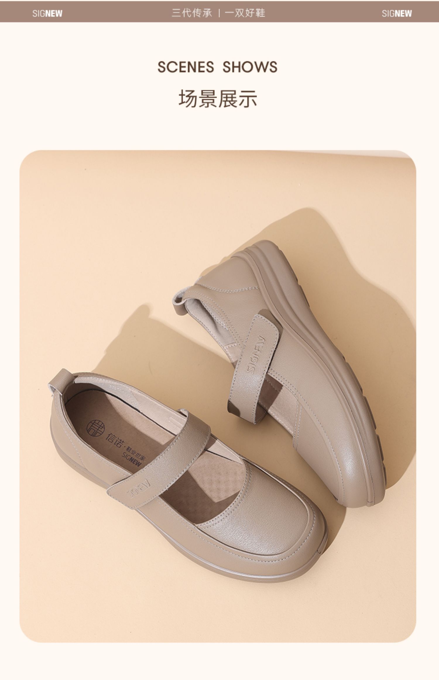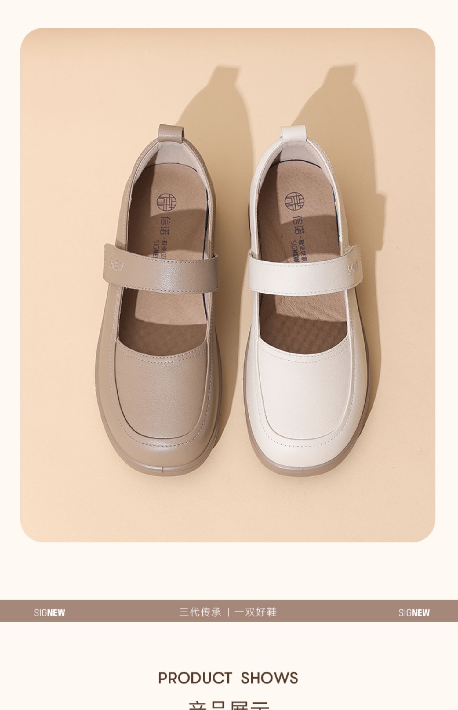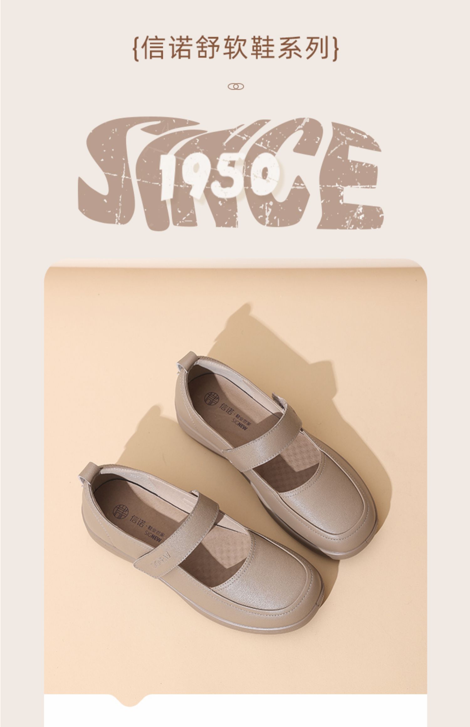 信诺真皮软底单鞋女款透气百搭妈妈鞋2025春季新款中老年休闲皮鞋5C8166-1