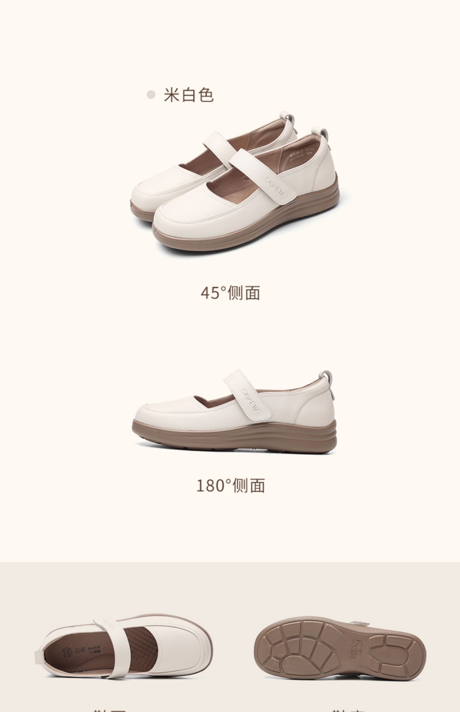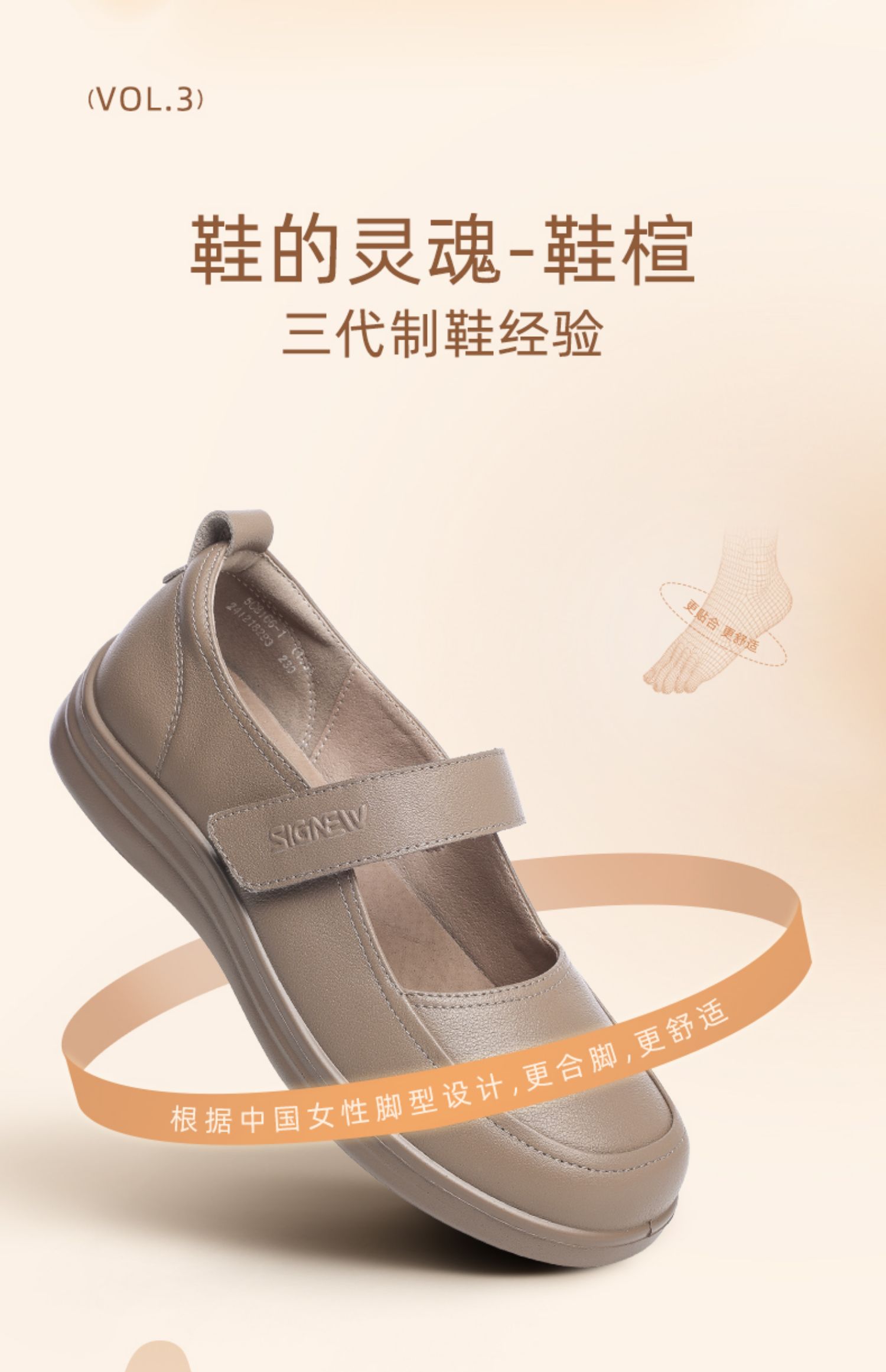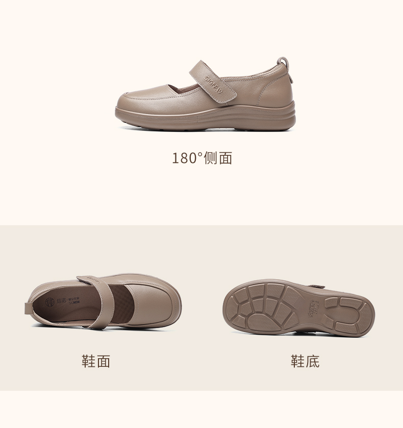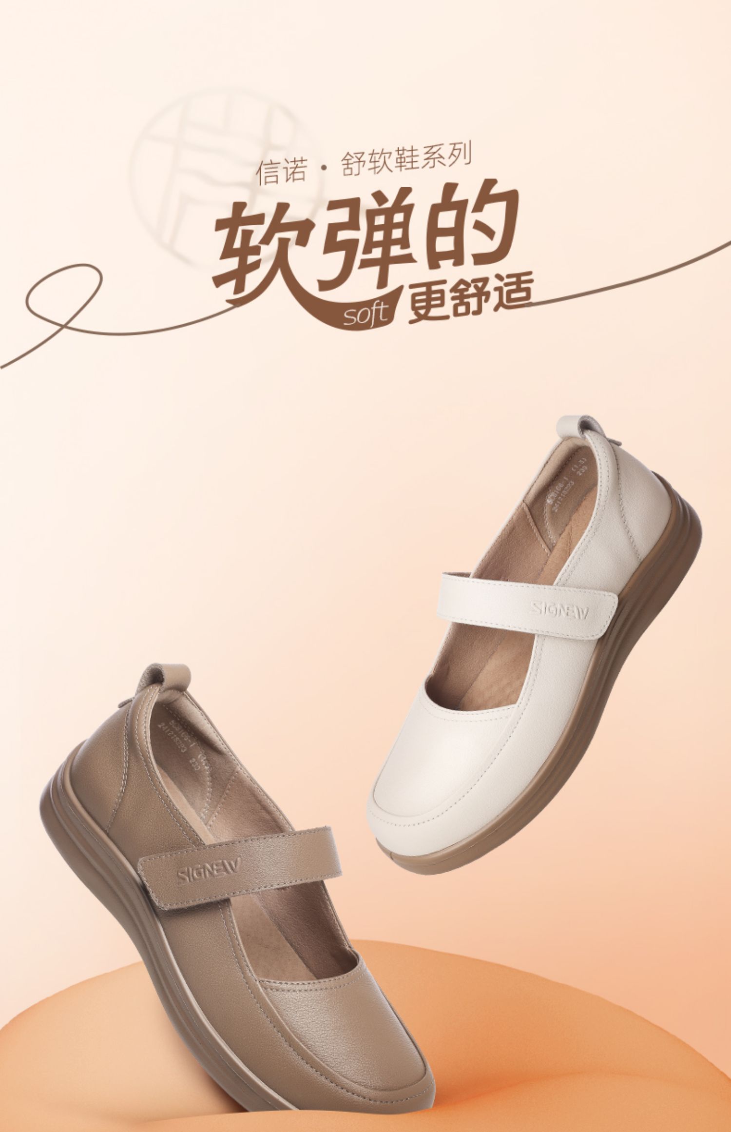 信诺真皮软底单鞋女款透气百搭妈妈鞋2025春季新款中老年休闲皮鞋5C8166-1