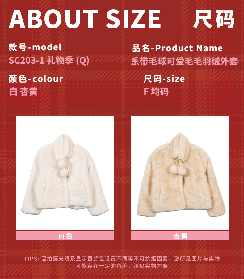 系带毛球可爱毛毛羽绒外套-纪念日百货门店同款168644168