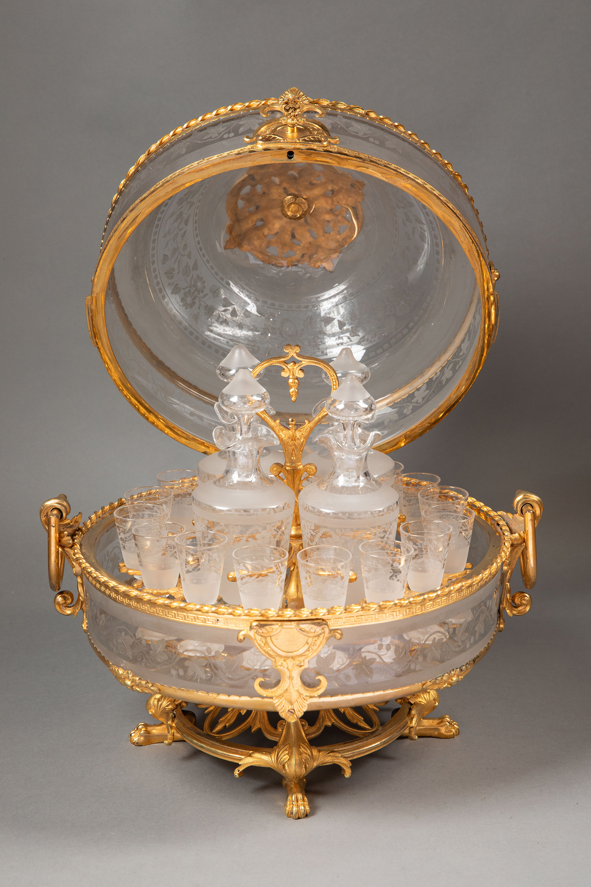 1850-1870年代法国拿破仑三世时期出品铜鎏金精雕修饰巴卡拉水晶酒具套装