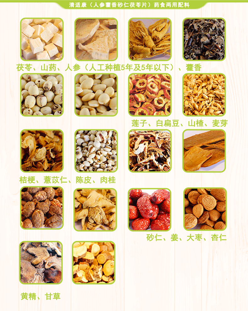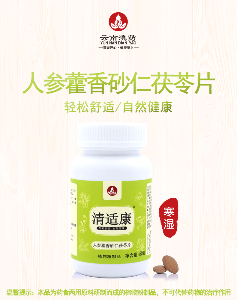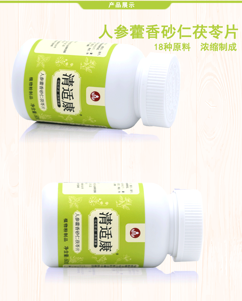 清适康人参藿香砂仁茯苓片寒湿人群茯苓薏仁红豆山药荷叶陈皮姜枣草本浓缩压片(0.5克×120片/瓶)