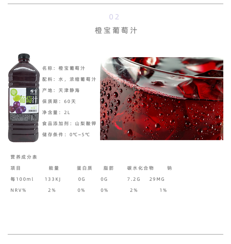 橙宝果汁2L原汁(直饮果汁)多口味 橙汁 葡萄 红西柚 菠萝 芒果 番茄 苹果