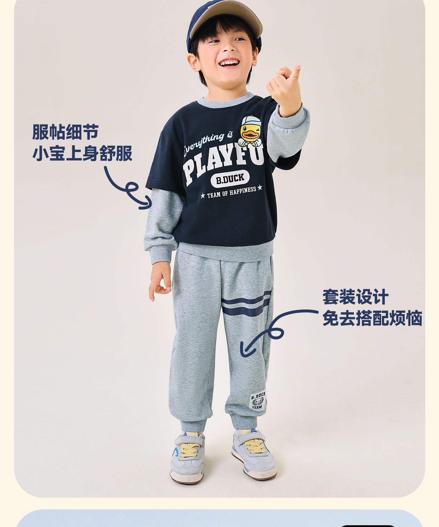 【套装】B.Duck小黄鸭童装春秋学院风外服套装105-150 BF3681081