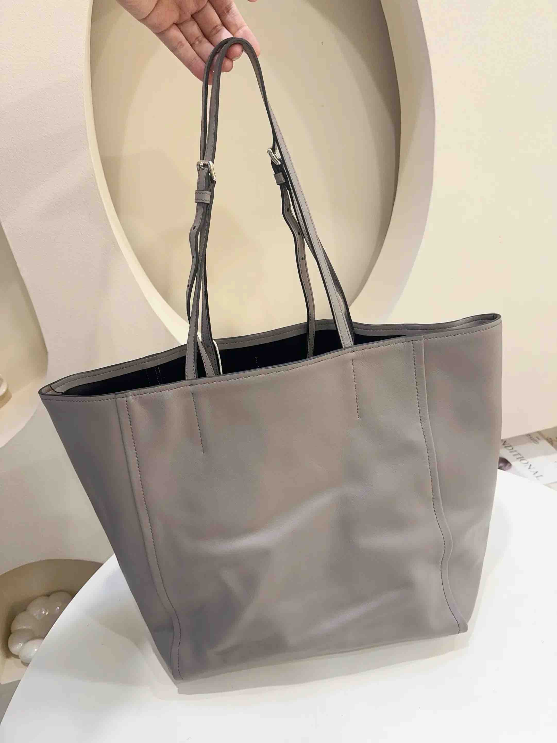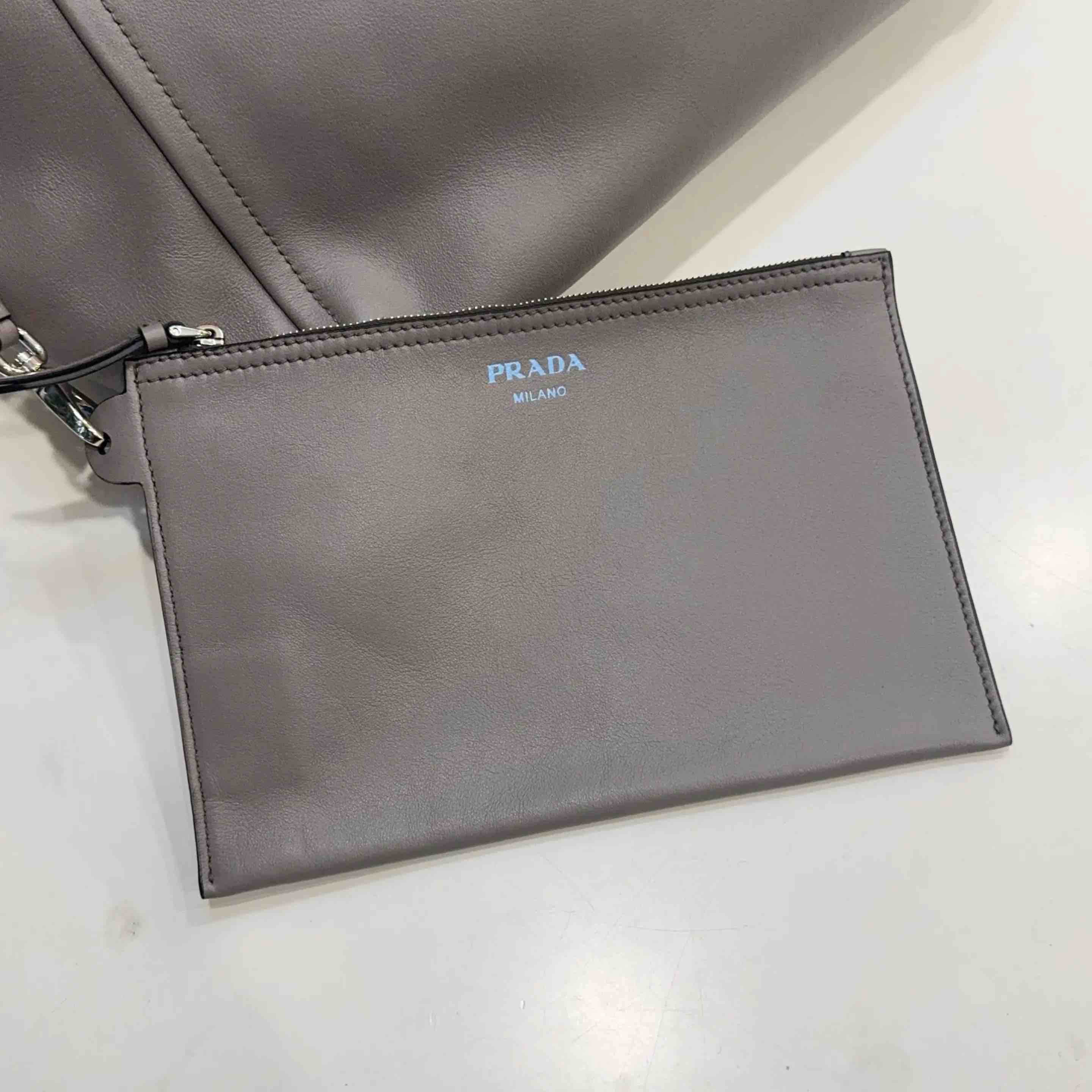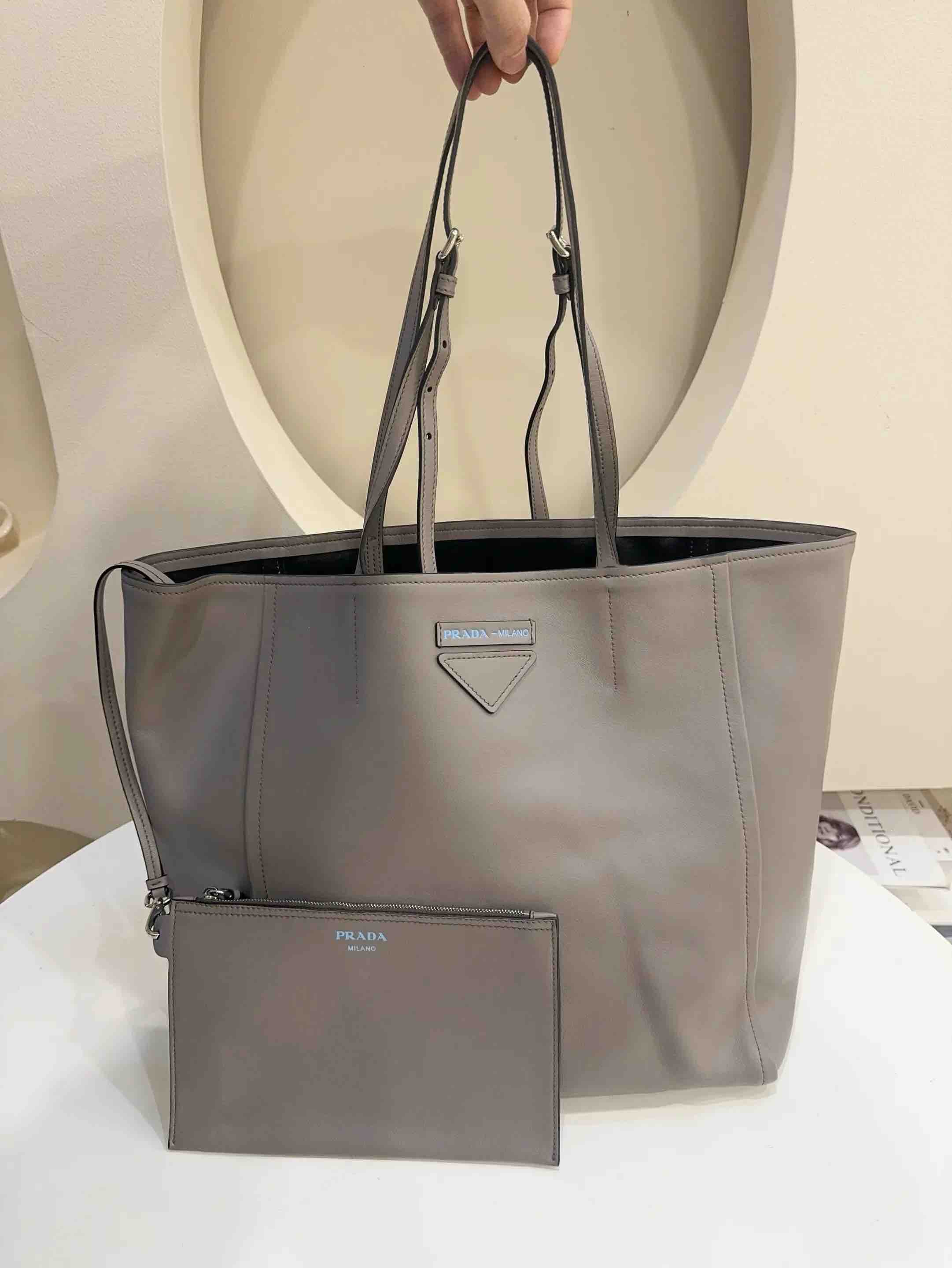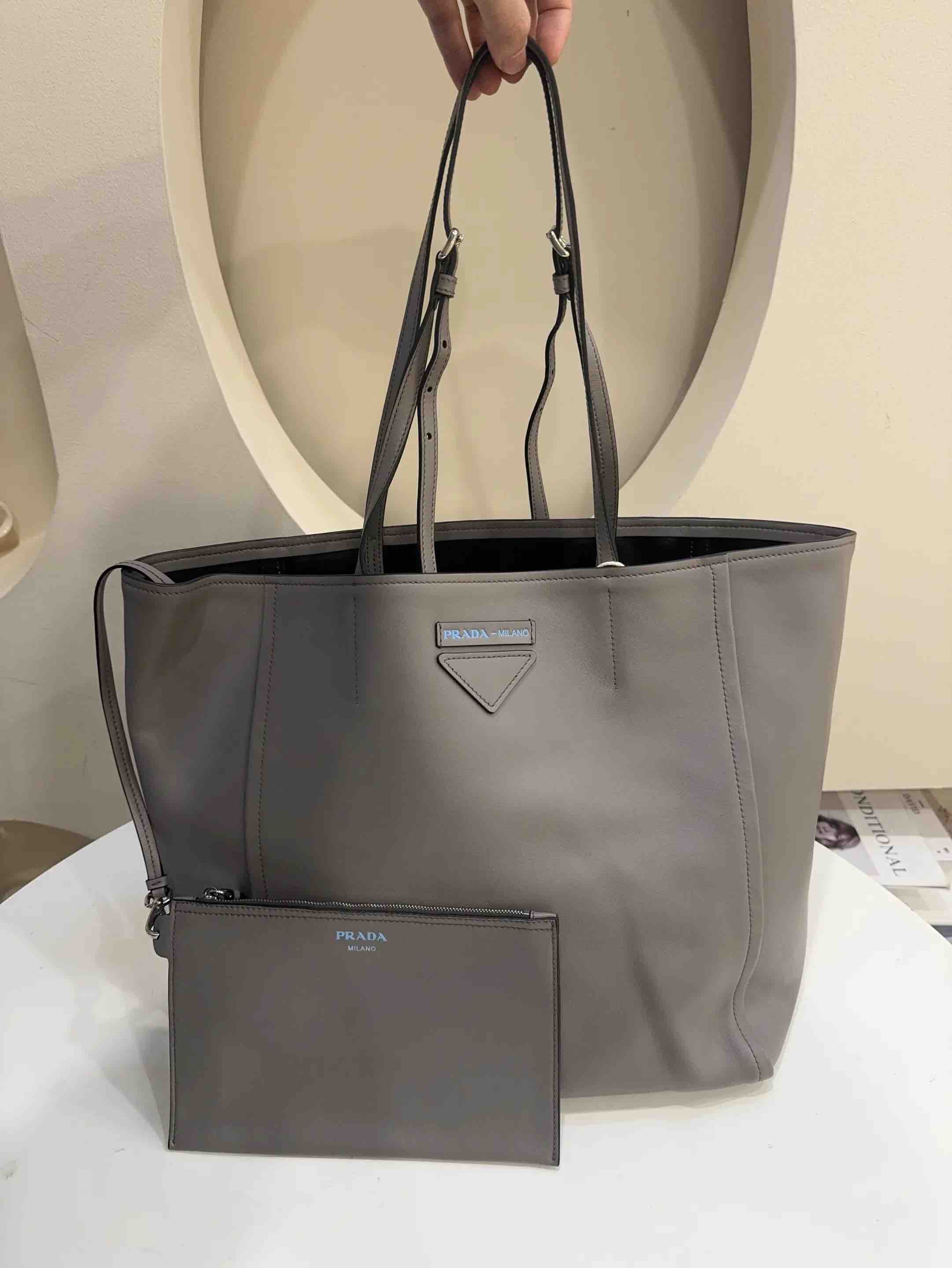 【商品详情】正品二手 Prada 大号 灰色 牛皮 托特包🫤97新 46*33 配件:子袋。实用耐造单品
