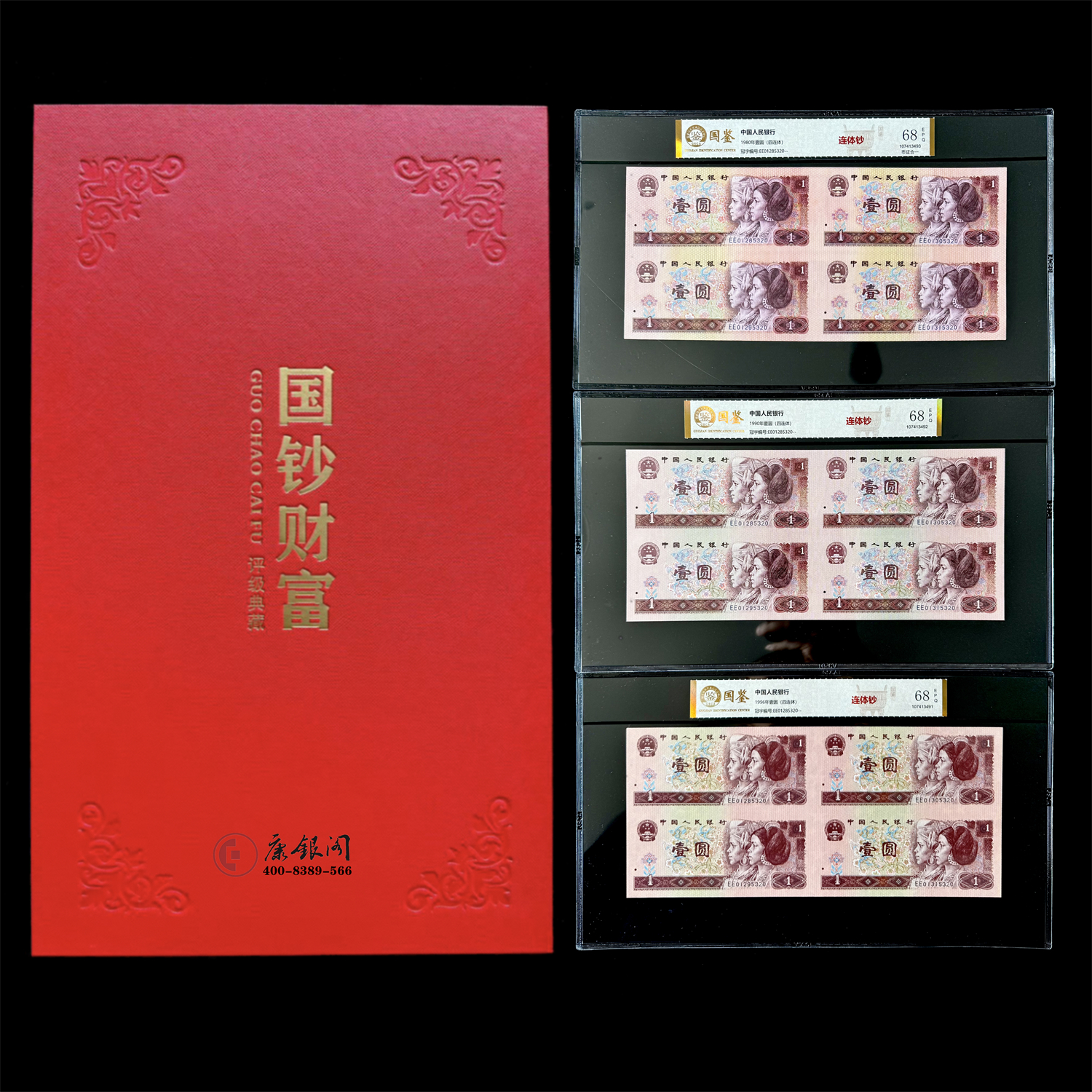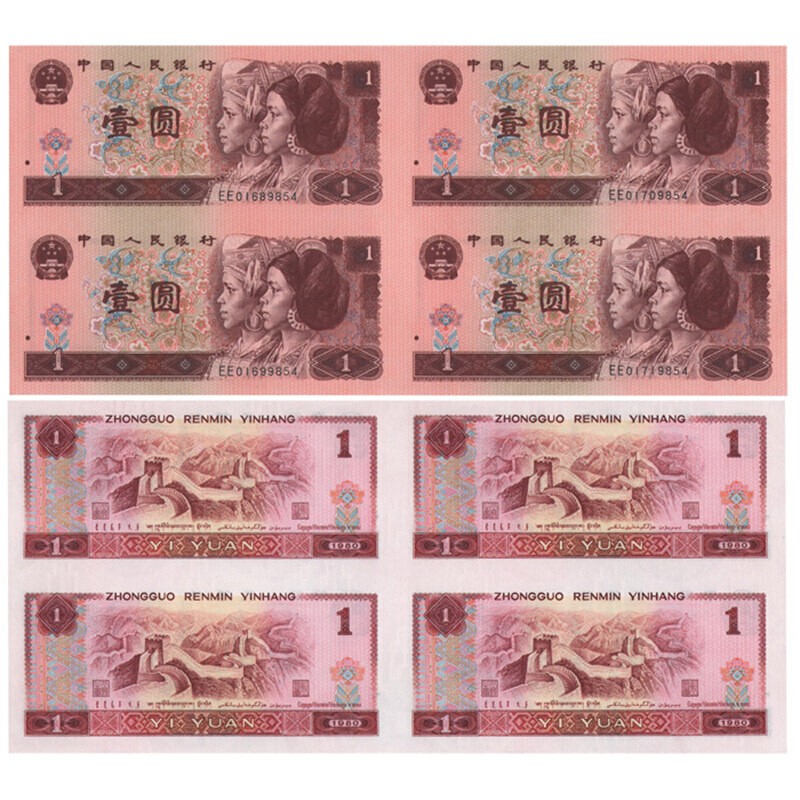 【藏品内容】1980年1元四连体、1990年1元四连体、1996年1元四连体各一张。
