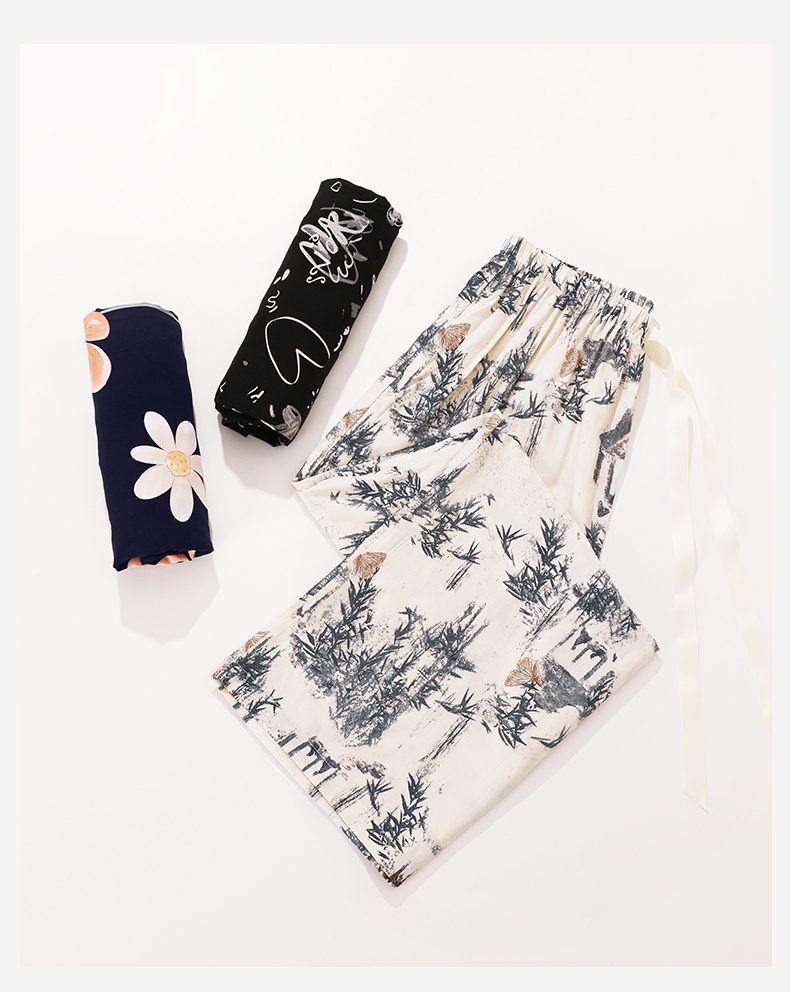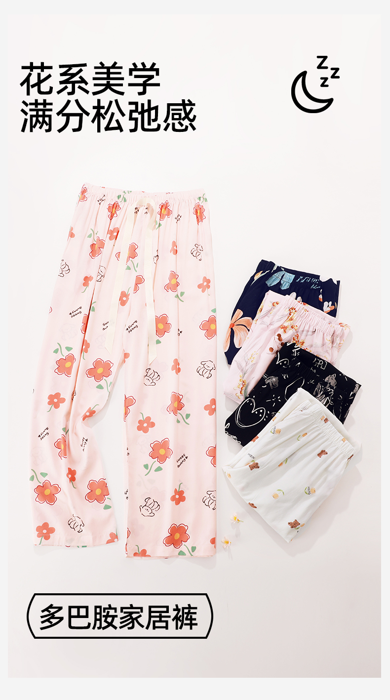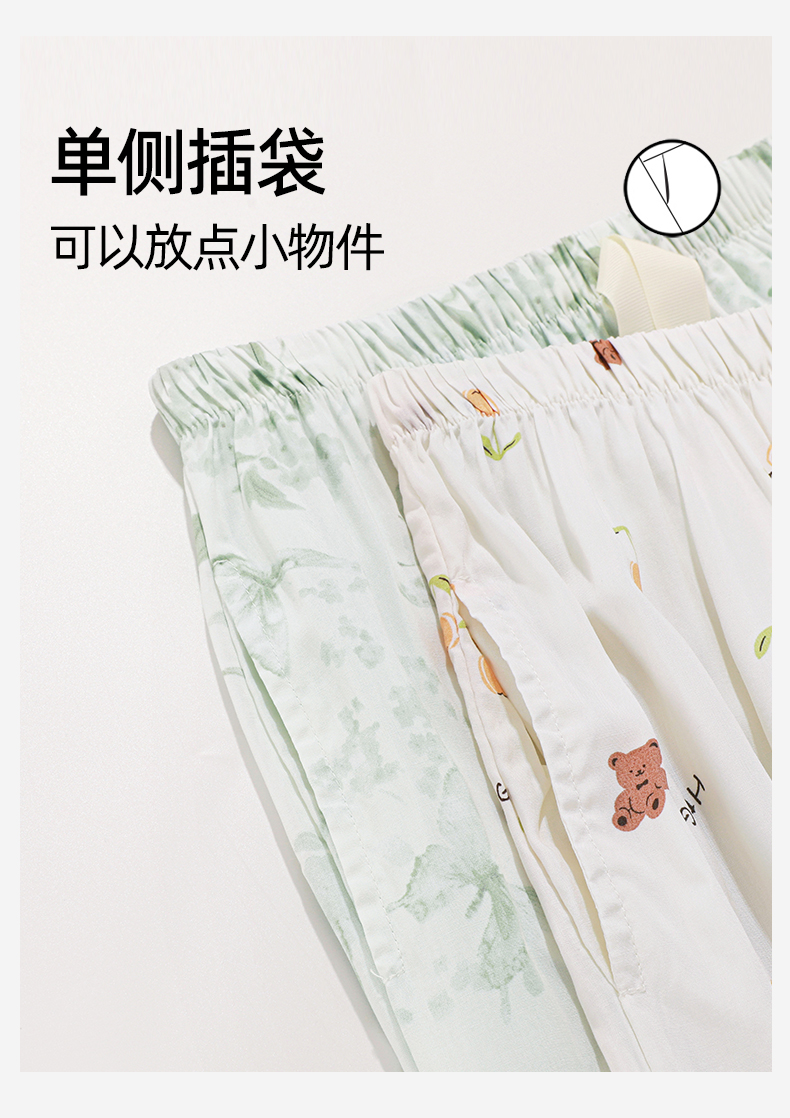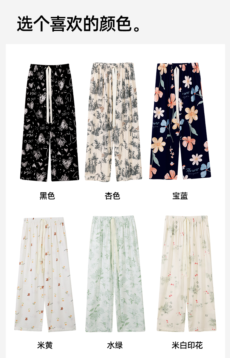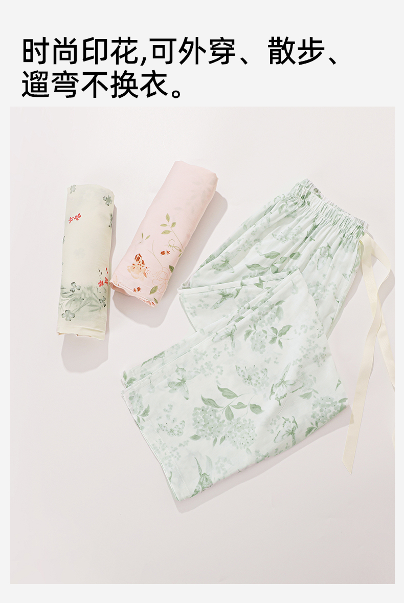 【商场同款】熳洁儿 春夏印花单裤百搭显瘦阔腿裤升级版带口袋花花裤25203020/25203021