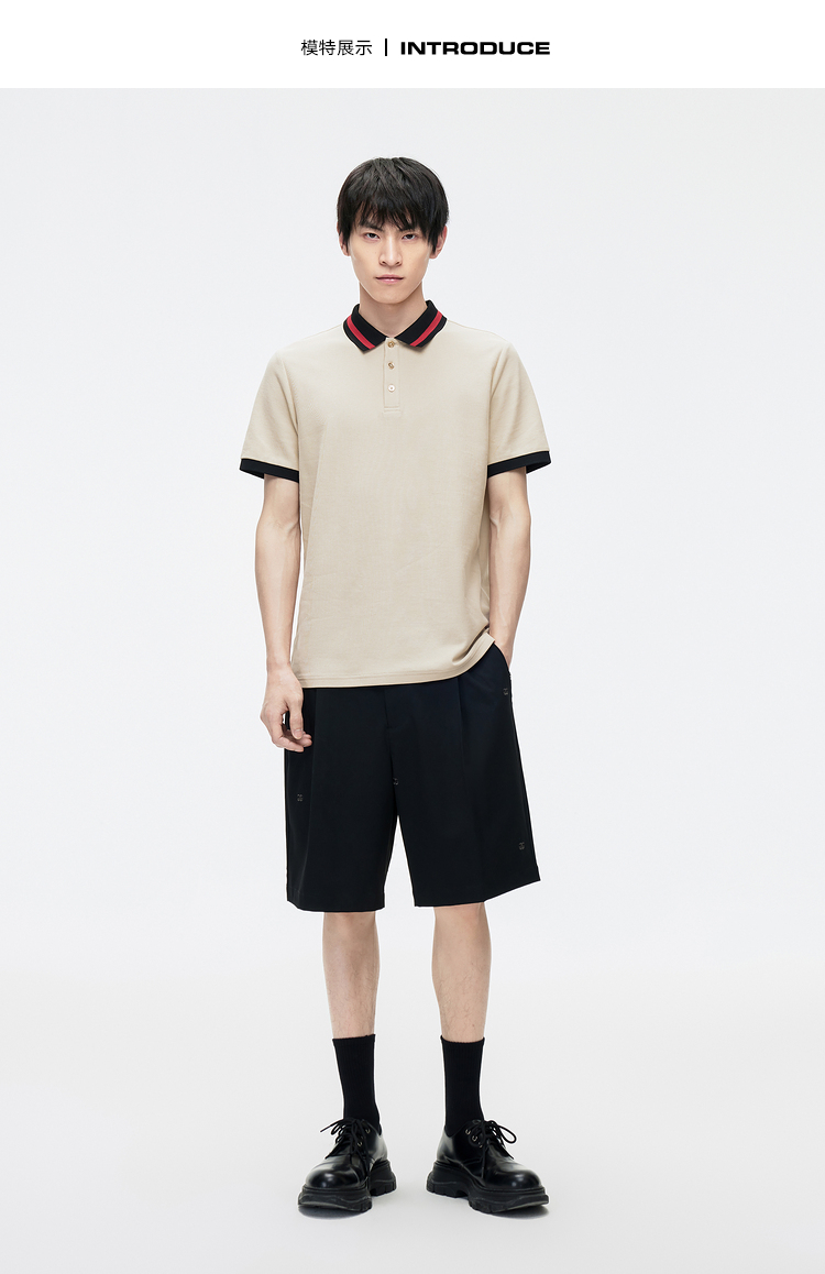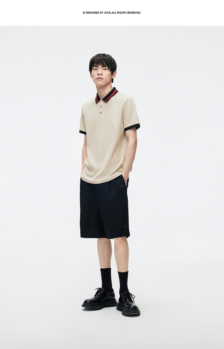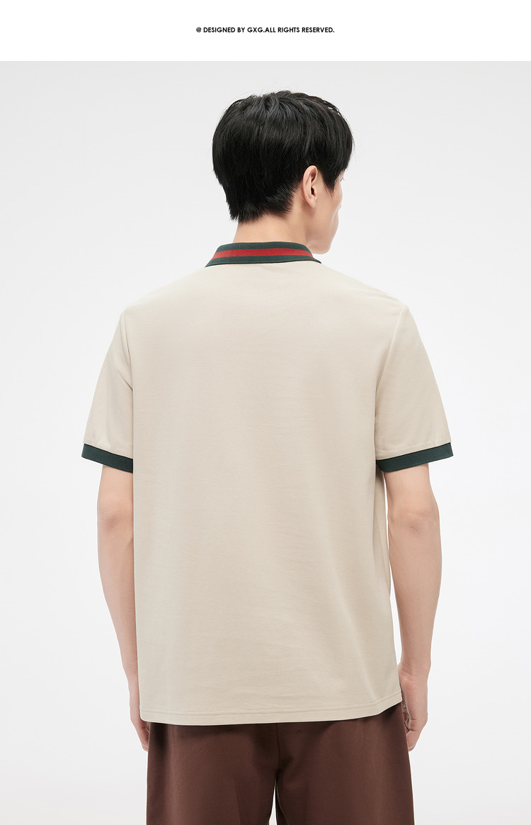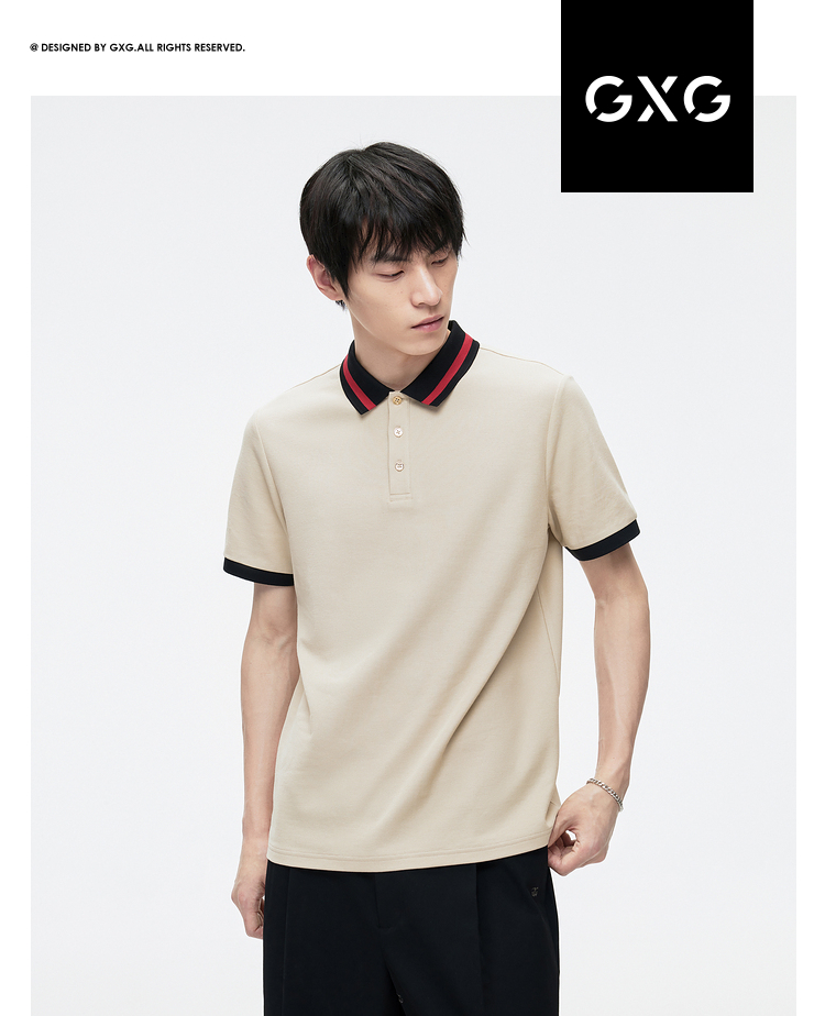 GXG男装 夏热卖潮流撞色时尚百搭休闲精美领扣男士Polo衫短袖