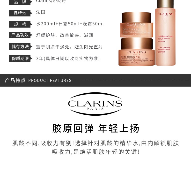 【香港直邮】 CLARINS/娇韵诗 紧致三件套(水200ML+日霜50ML+晚霜50ML)