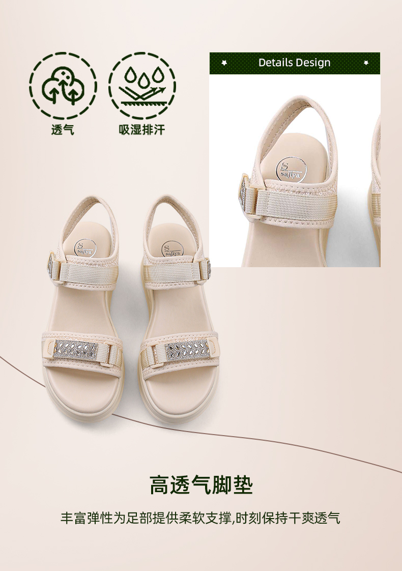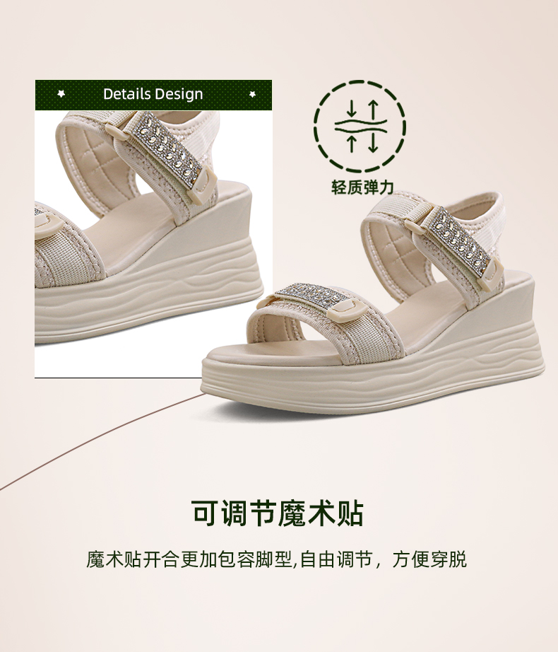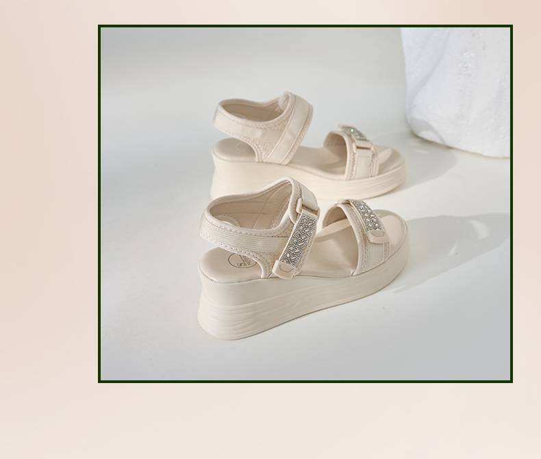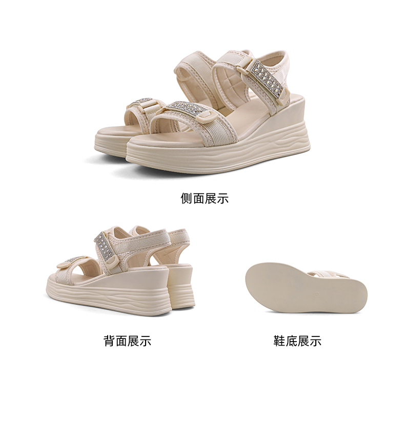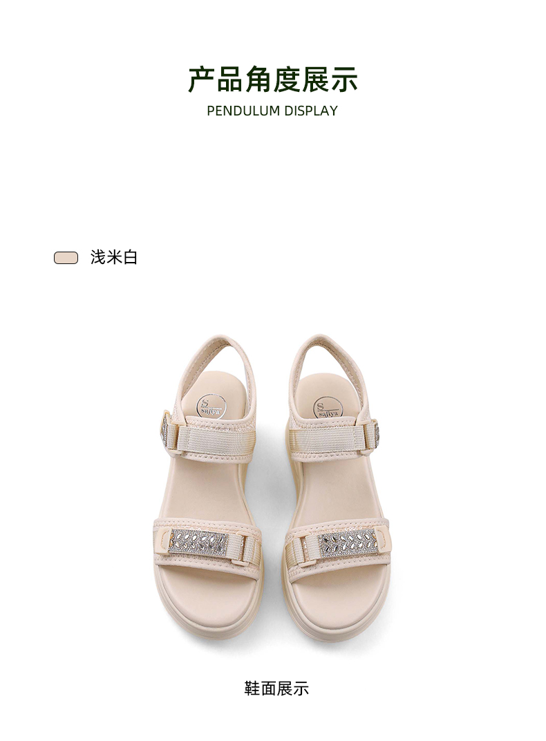 Safiya/索菲娅2024夏新款烫钻魔术贴坡跟休闲厚底运动凉鞋 SF42115177