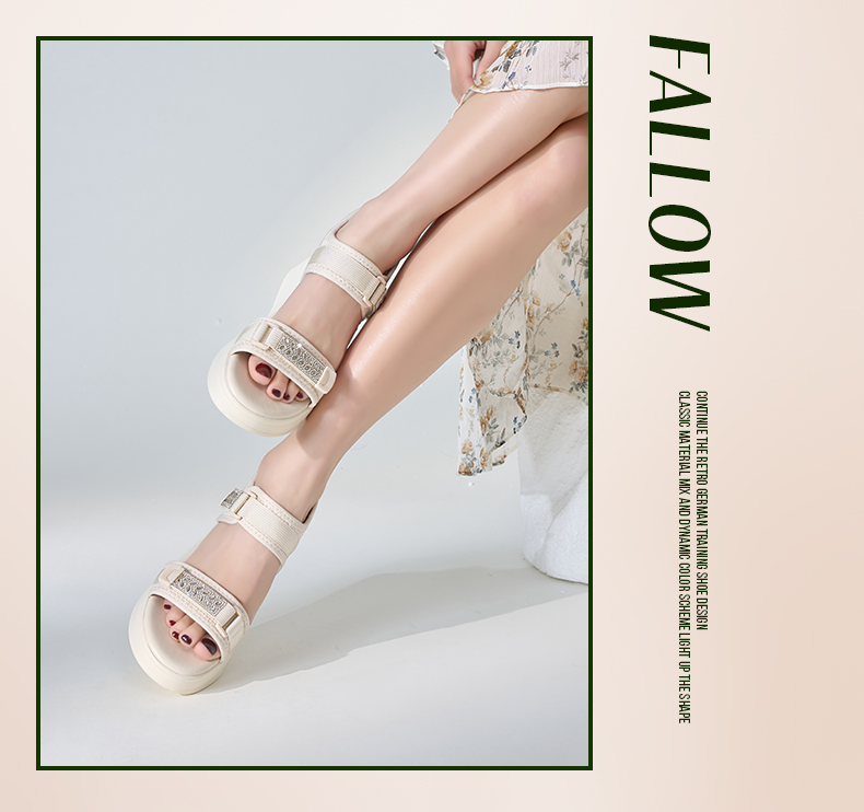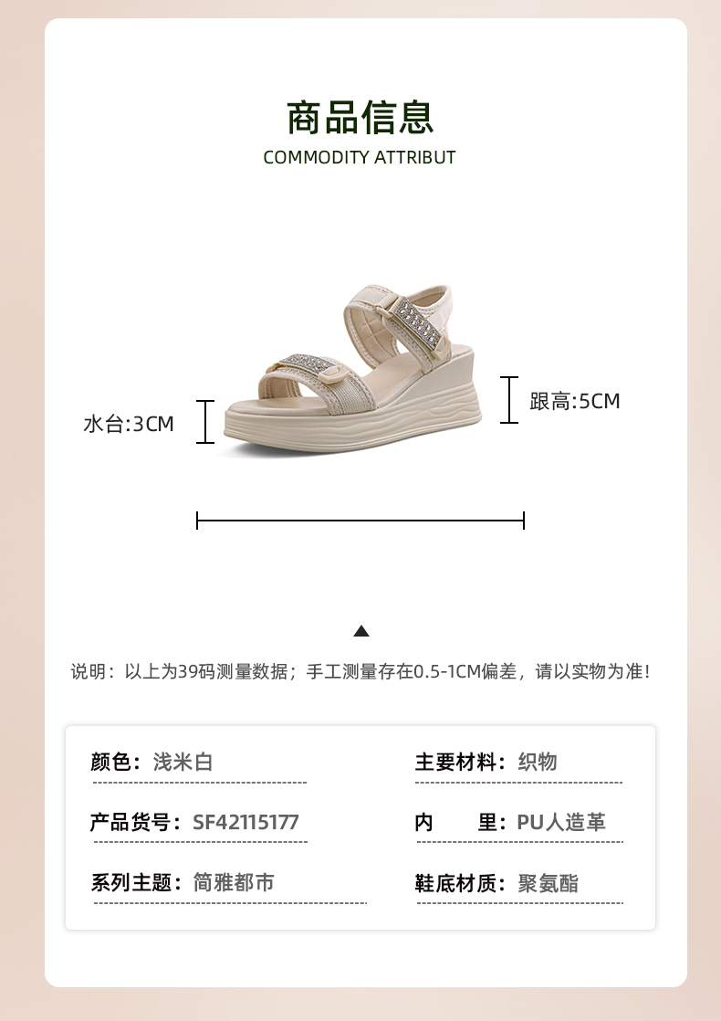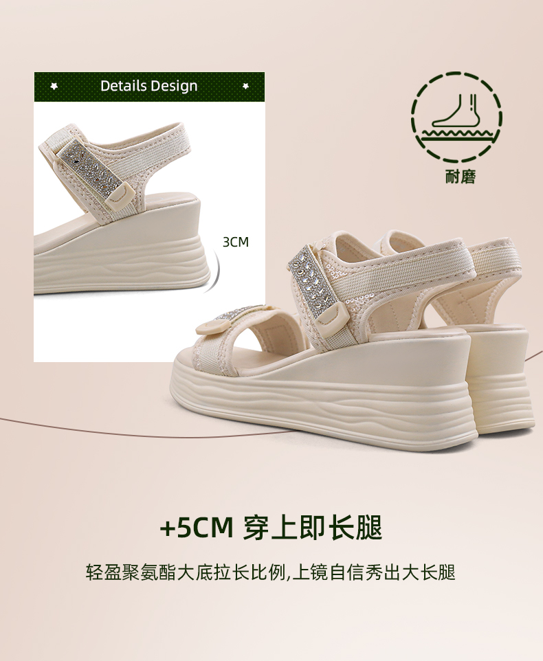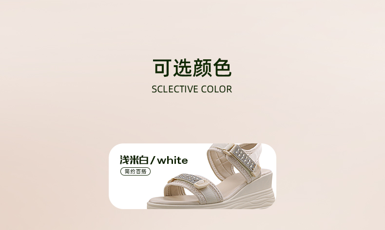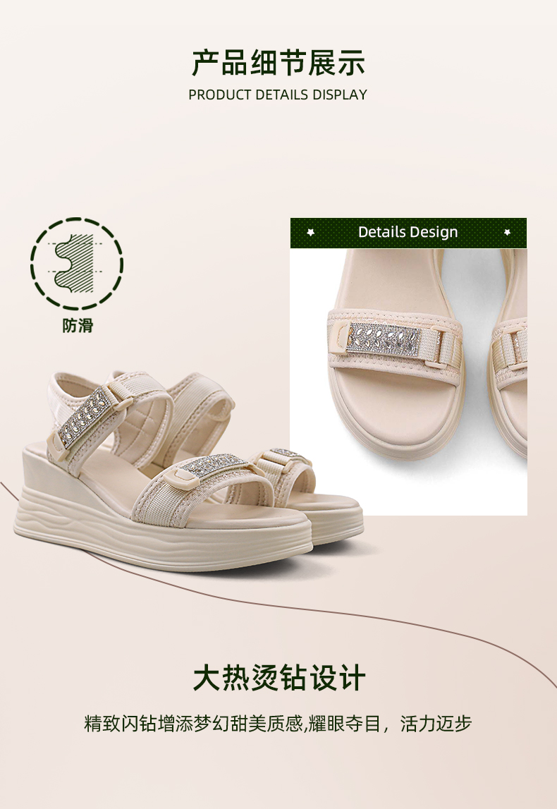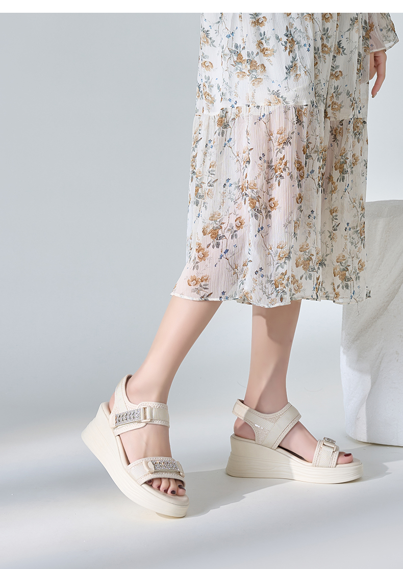 Safiya/索菲娅2024夏新款烫钻魔术贴坡跟休闲厚底运动凉鞋 SF42115177
