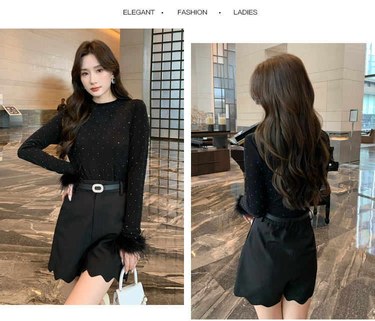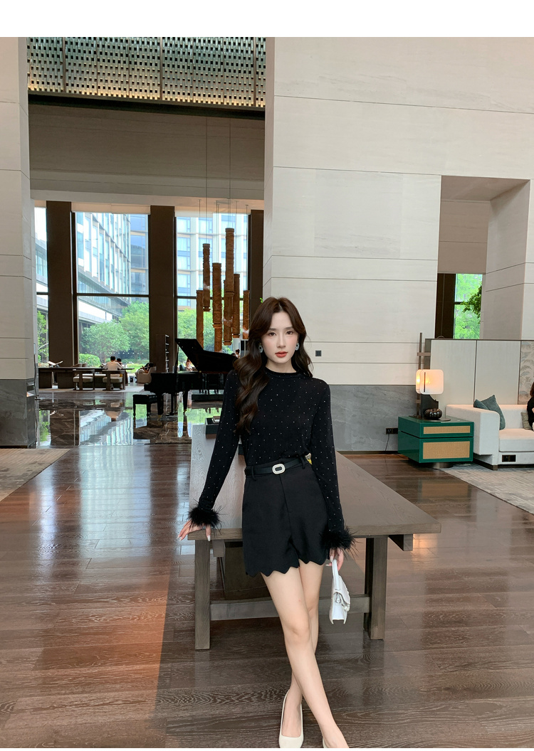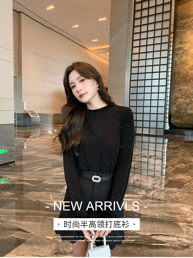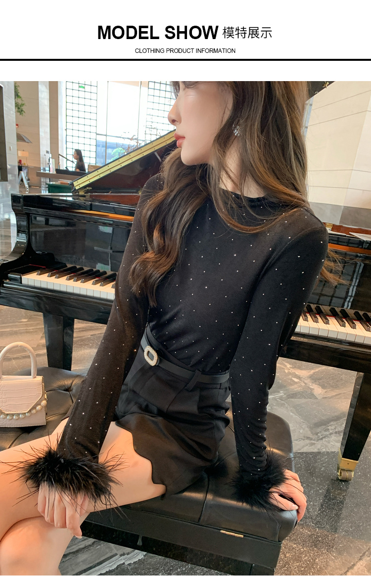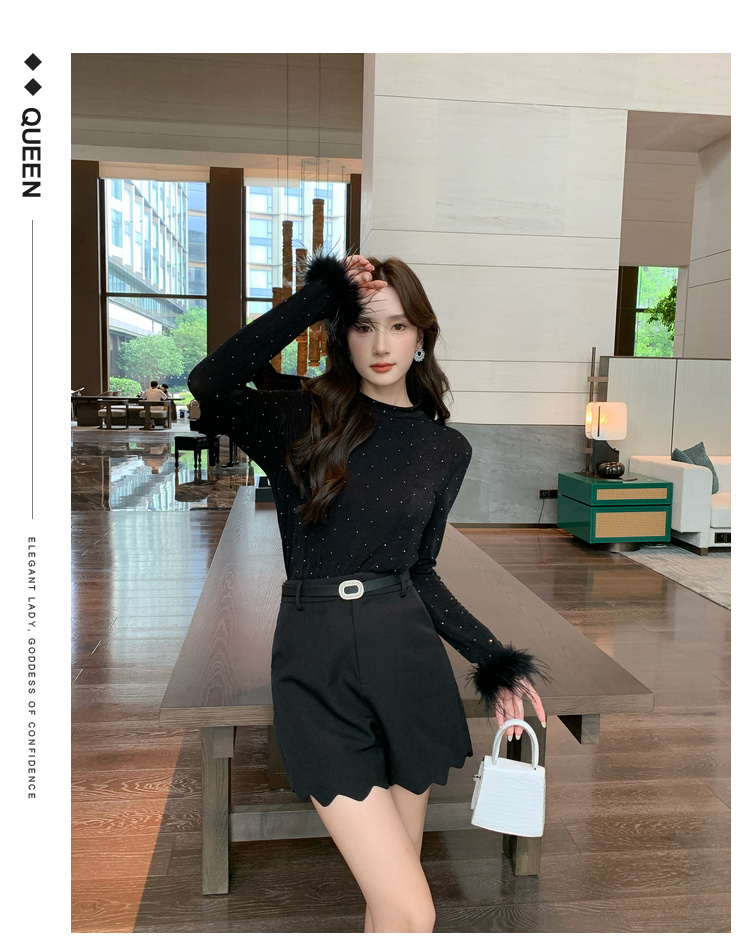 奢姿大码女装2025秋季减龄烫钻设计打底衫胖妹妹时尚穿搭套装合集9943153517