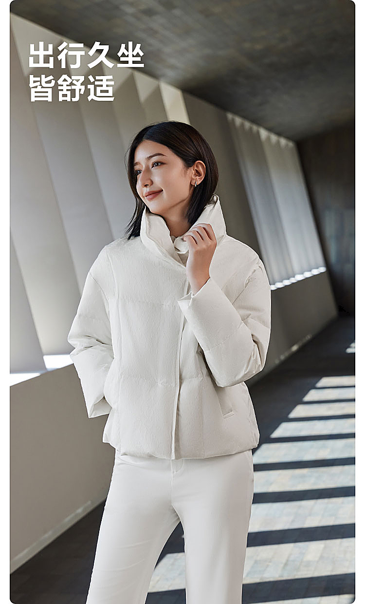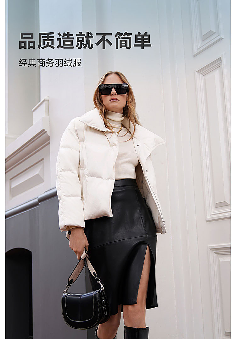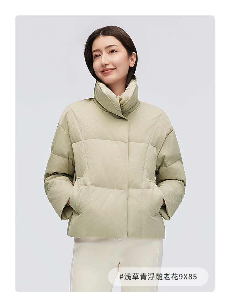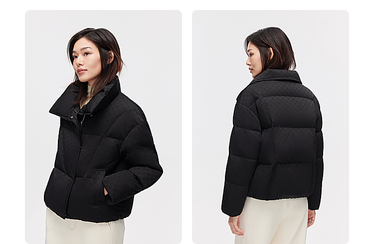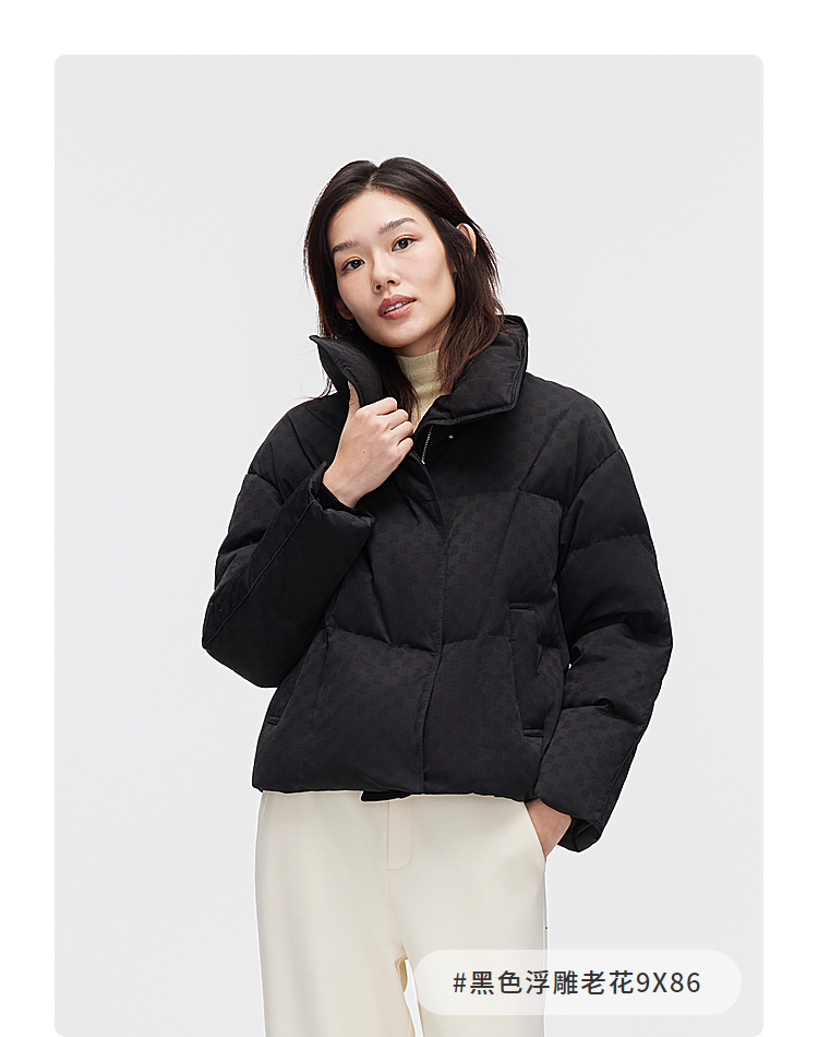 B30144112W波司登2023冬季新款女士短款经典商务翻领印花小廓形气质羽绒服