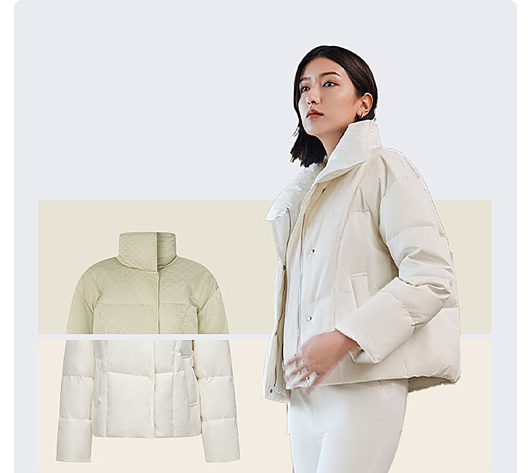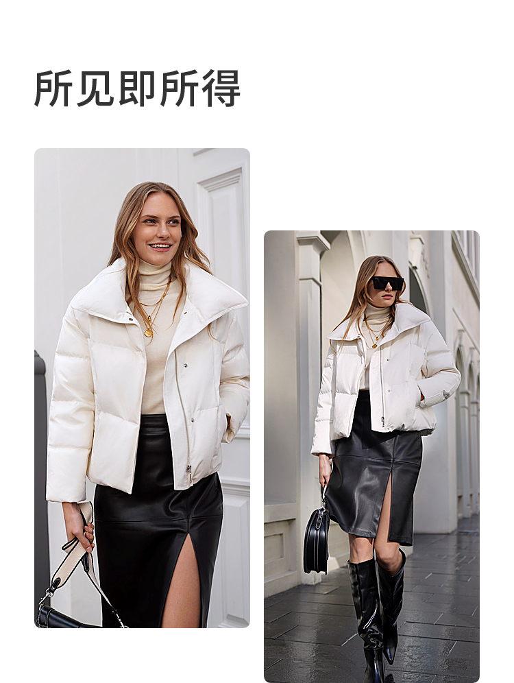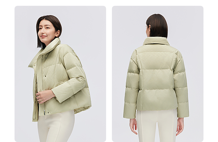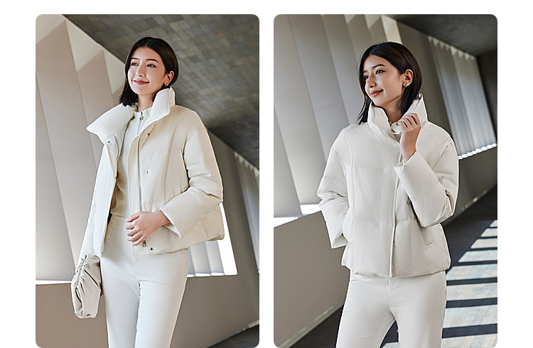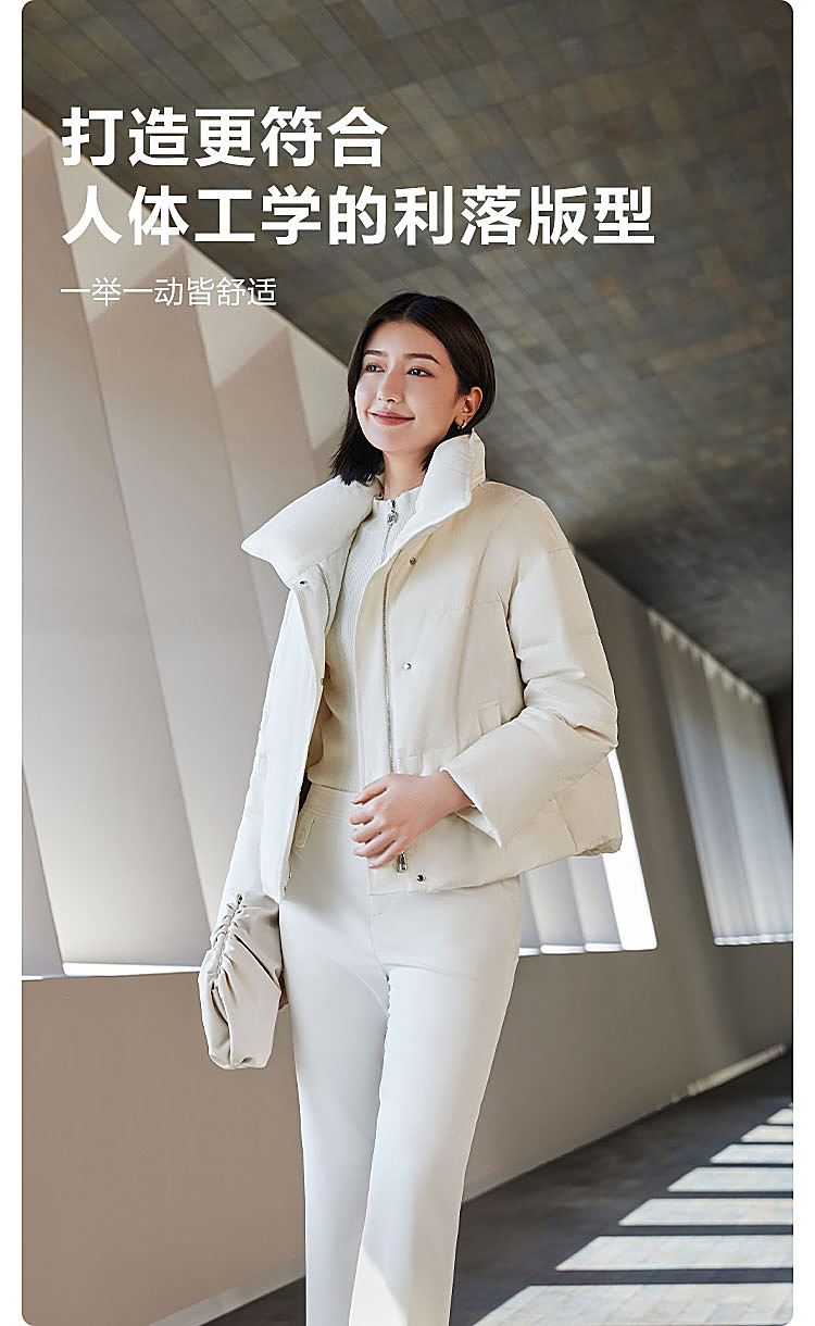 B30144112W波司登2023冬季新款女士短款经典商务翻领印花小廓形气质羽绒服