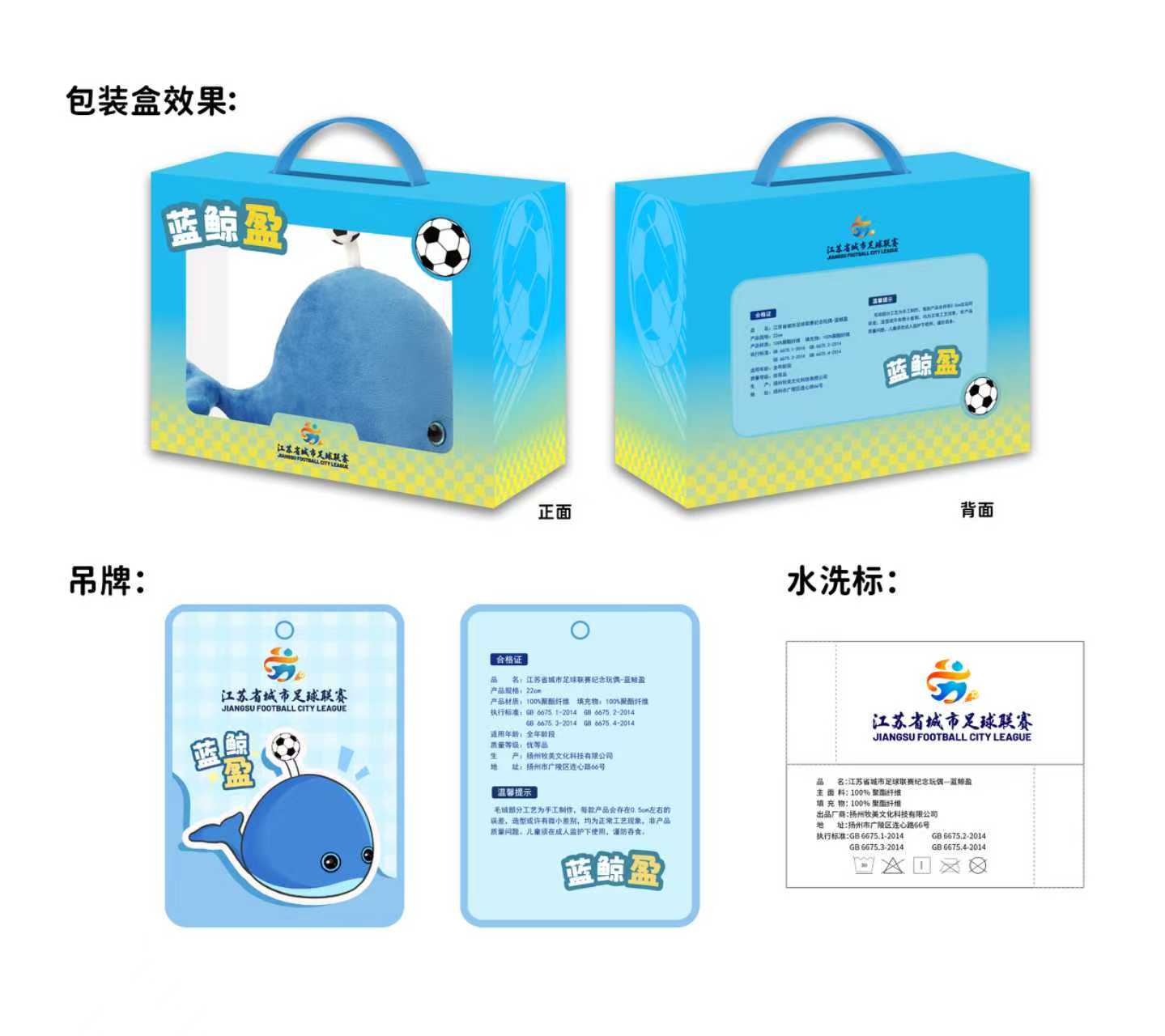 江苏省城市足球联赛纪念玩偶——蓝鲸盈