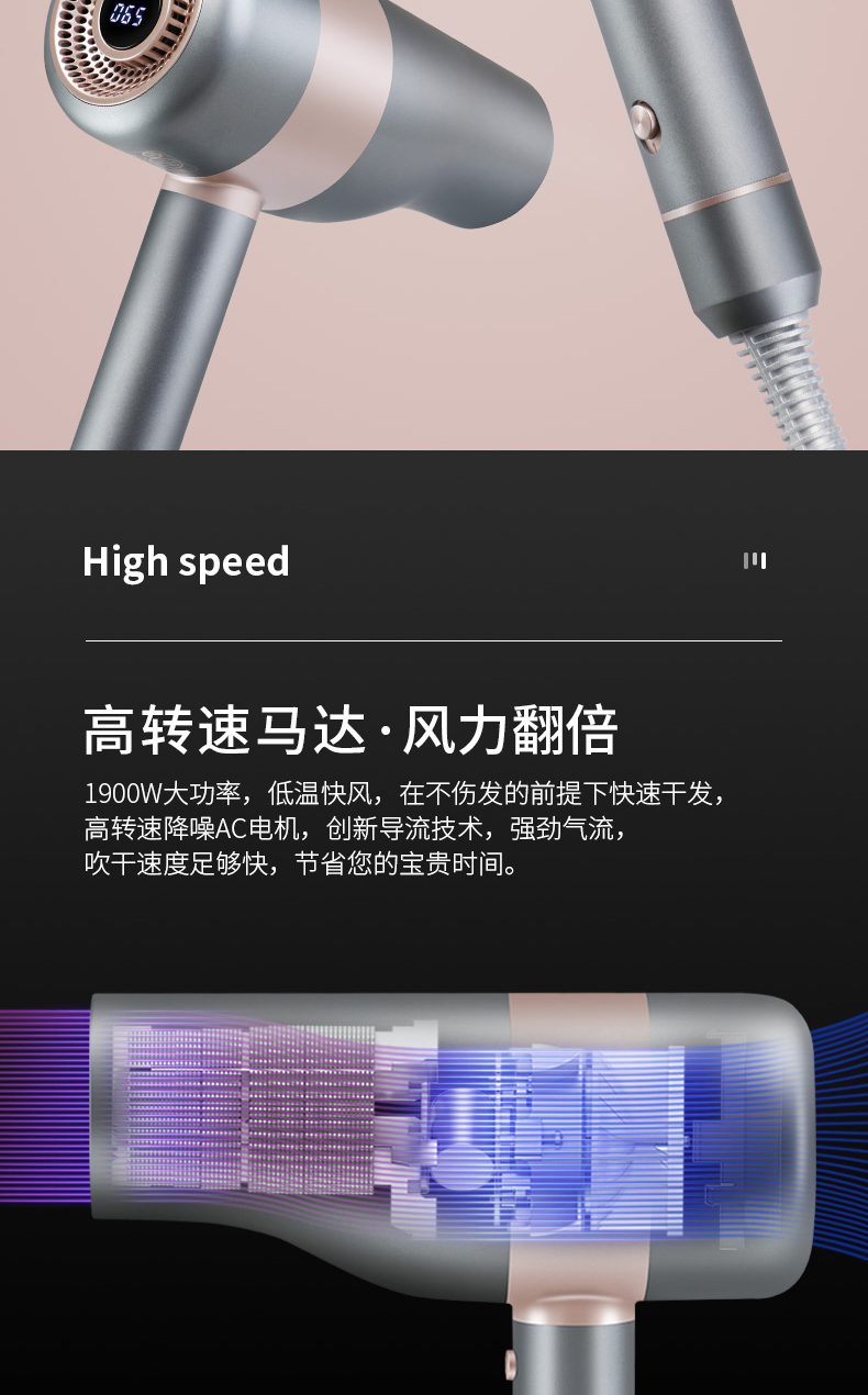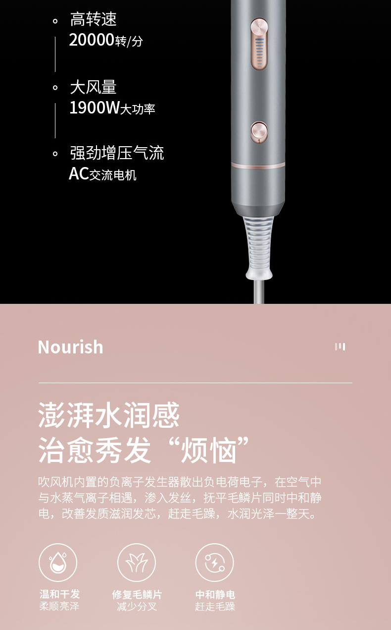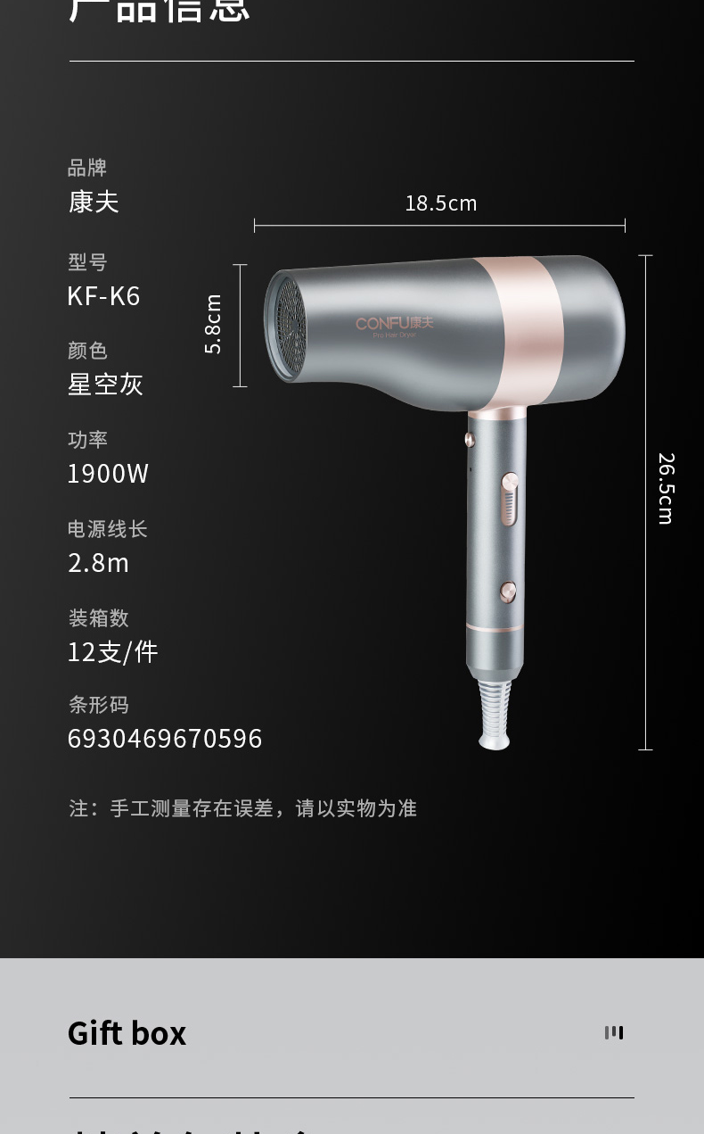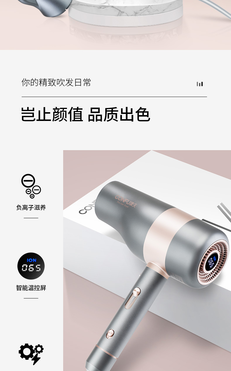 康夫电吹风机K6家用护发大功率负离子不伤发速干发型师专用吹风筒